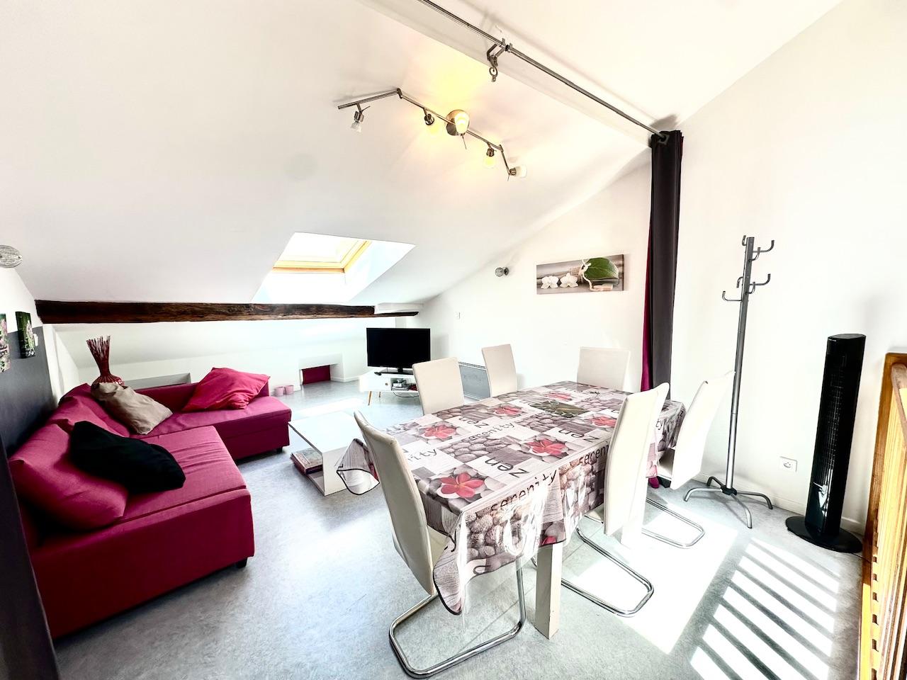 AX-LES-THERMES, Idéalement placé au centre de la ville, T3 mansardé très lumineux de 95 m² hab. (40 m² Carrez) dans une copropriété de 7 lots principaux comprenant entrée avec palier de rangement aménagé, escalier, séjour, cuisine, 2 chambres, salle de bains avec wc et pièces de rangement sous combles. Double exposition Sud-Est, vendu meublé. Immeuble rénové en 2010. Charges courantes/an : 2 078 € (avec eau comprise). Honoraires à la charge du vendeur. Logement à consommation énergétique excessive. Montant estimé des dépenses annuelles d'énergie pour un usage standard : entre 2 520 et 3 440 euros. Prix moyens des énergies indexés en 2022.