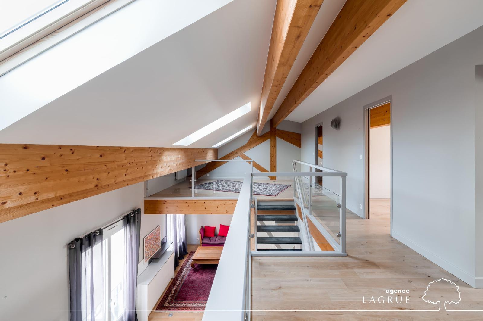 La partie habitation, aménagée en loft duplex séduit par son agencement réfléchi et ses matériaux de qualité, combinant esthétique et confort. Le 2ème étage comprend une cuisine entièrement équipée ouverte sur séjour-salon spacieux, dressing, salle d'eau avec wc, belle terrasse ensoleillée. Au 3ème étage nous trouvons une mezzanine, 2 chambres, une salle de bains, wc.