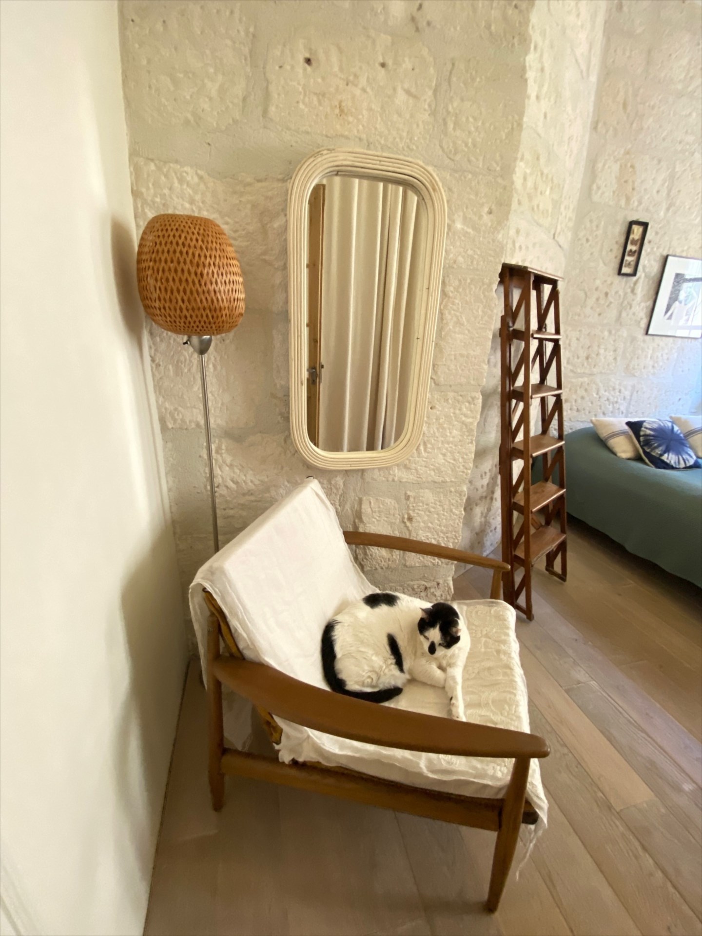 Pierres apparentes, portes anciennes restaurées, parquet en chêne massif, fenêtres en bois double vitrage,cuisine équipée design, 2 chambres, 1 salle d'eau.