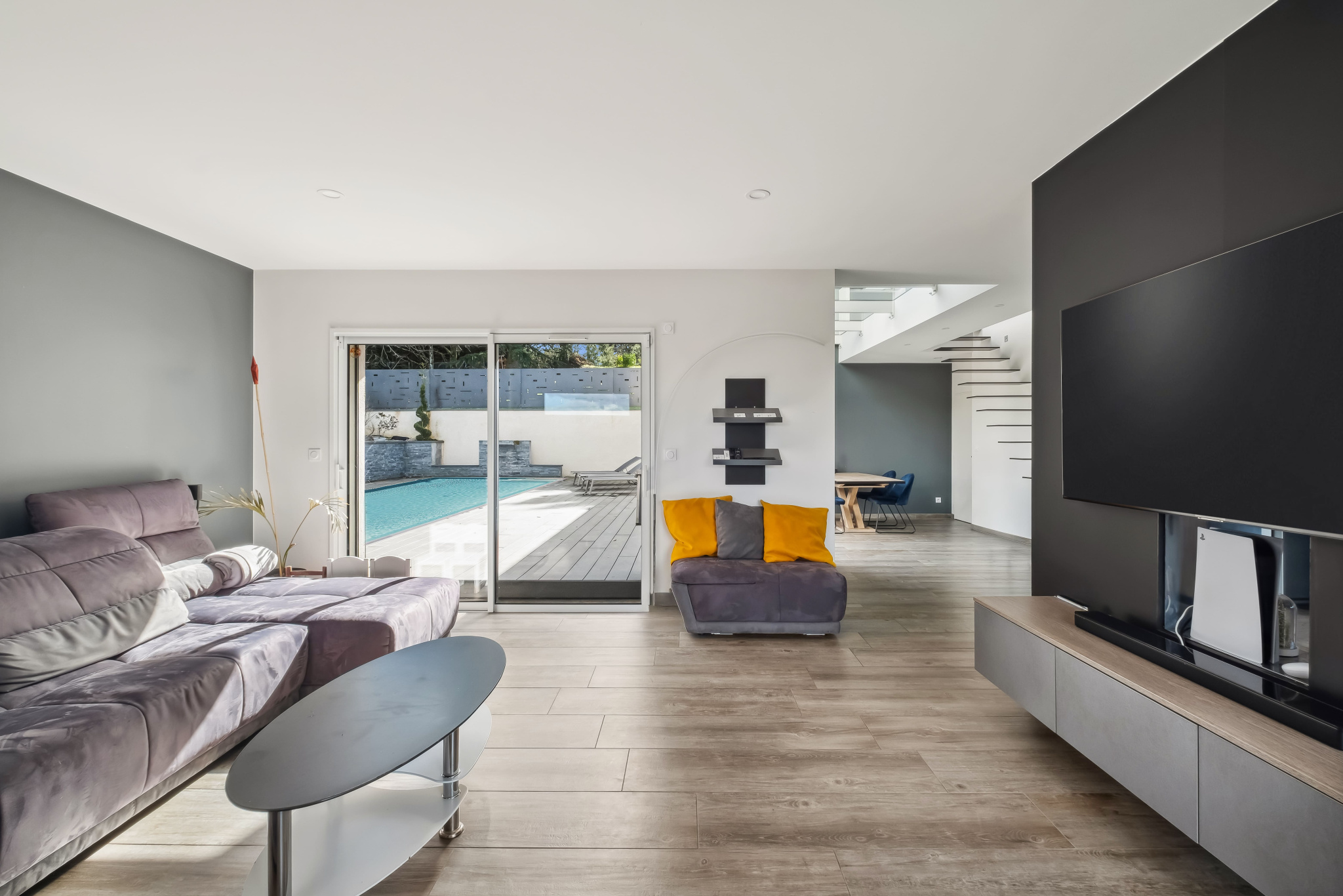 RARE ! Pollionnay, dans un secteur résidentiel à proximité immédiate du centre, venez découvrir cette magnifique propriété de 190 m2 construite en 2019 sur un terrain de 751 m2 avec piscine chauffée et terrain de pétanque, vous offrant une vue imprenable !! La maison se compose d'un grand hall d'accueil, d'un très bel espace de vie de 69 m2 baigné de lumière avec cuisine entièrement équipée, vous donnant un accès direct à la terrasse et au jardin, d'une suite parentale de 26 m2 avec salle d'eau, dressing et belle terrasse de 18 m2. Vous pourrez profiter de 3 autres chambres, d'une salle de bains, WC indépendants et buanderie. Une dépendance de 26 m2 avec vue sur la piscine vous permet d'aménager une salle de cinéma, un bureau ou tout autre espace selon vos envies... Un garage double de 31 m2 avec porte sectionnelle vient compléter ce bien.