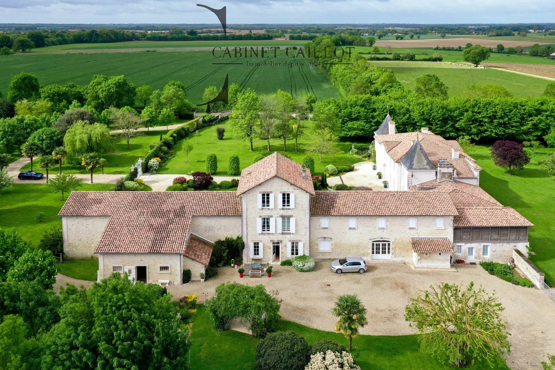 Entre BORDEAUX et LA ROCHELLE, à 30 minutes du TGV et à seulement 5 minutes des premiers commerces de proximité, passez la grille et longez l'allée qui vous mènera à un magnifique ensemble immobilier composé d'une maison de maître et de ses communs. Le logis principal, avec son avant-corps central couronné d'un fronton triangulaire et encadré par deux pavillons carrés, comprend un hall d'entrée traversant, une belle pièce de réception saintongeaise, une cuisine et son arrière-cuisine, un salon avec son poêle émaillé décoratif, une petite salle à manger, un salon/bureau, deux chambres, une salle d'eau/WC, et un WC séparé.