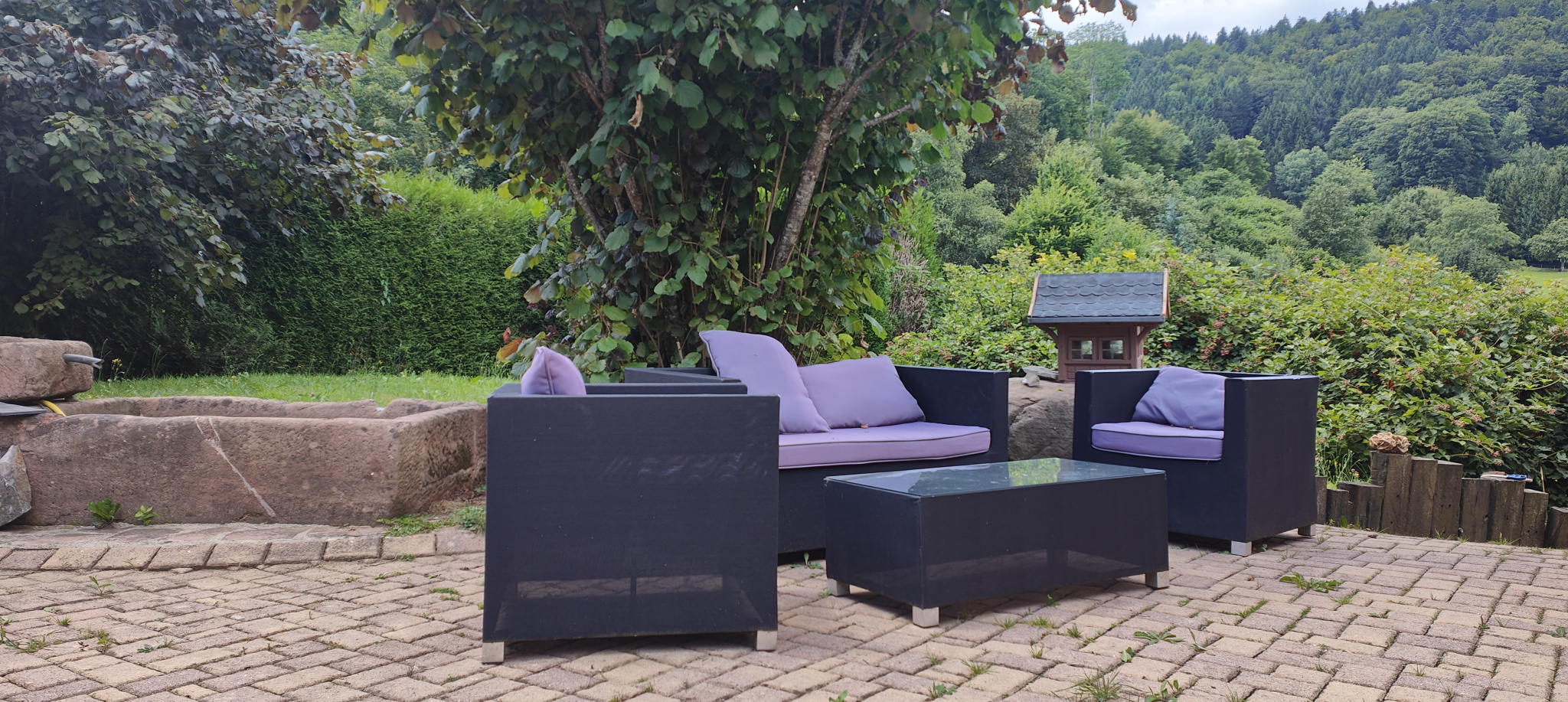 Laissez-vous séduire par un environnement verdoyant et apaisant. Profitez d'une vue dégagée et imprenable sur la nature environnante, dans un secteur très peu passant où la tranquillité est garantie. La propriété est clôturée, agrémentée d'une jolie fontaine (alimentée par l'eau communale) et de végétation offrant une ombre bienvenue, une invitation à la détente et aux repas en plein air.