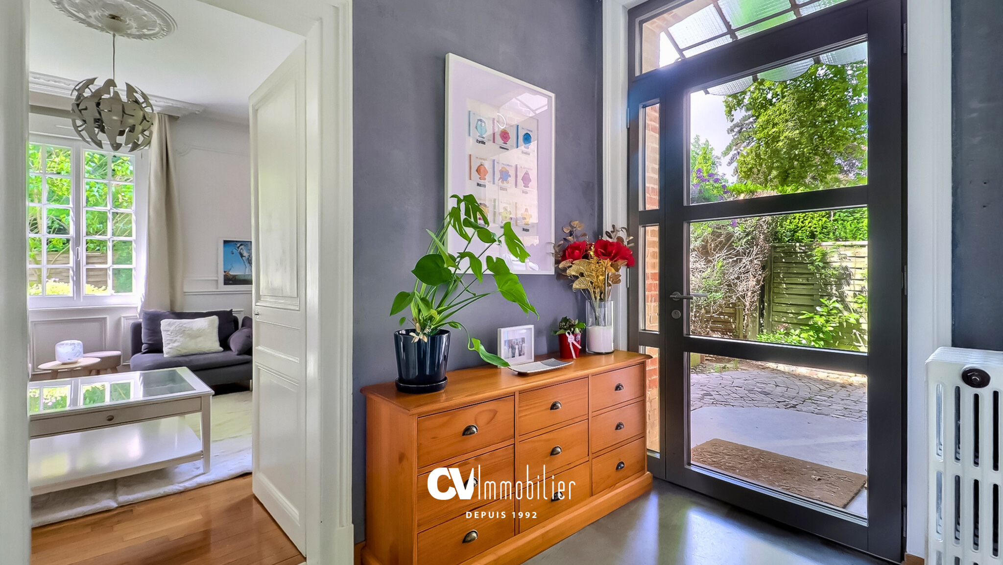 Vous aimerez : le charme de l'ancien (belle hauteur sous plafond, moulures, parquet) allié à la modernité, la proximité avec le centre-ville et le coin de verdure qui entoure la maison