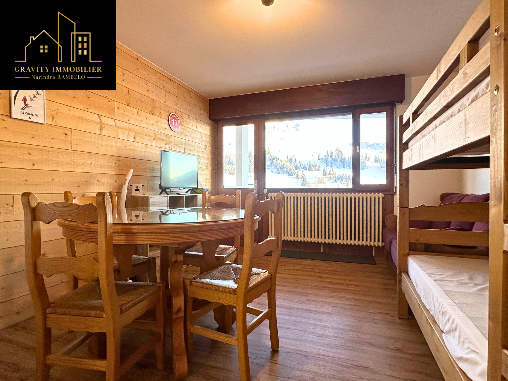 L'appartement se compose d'une pièce de vie lumineuse, d'une cuisine équipée, d'une chambre, d'une salle d'eau, d'un W.C séparé et de deux balcons exposés plein sud. Le studio, quant à lui, offre une pièce de vie avec cuisine, une salle de bain avec W.C ainsi qu'un balcon orienté sud, permettant de profiter d'une vue imprenable sur les pistes.