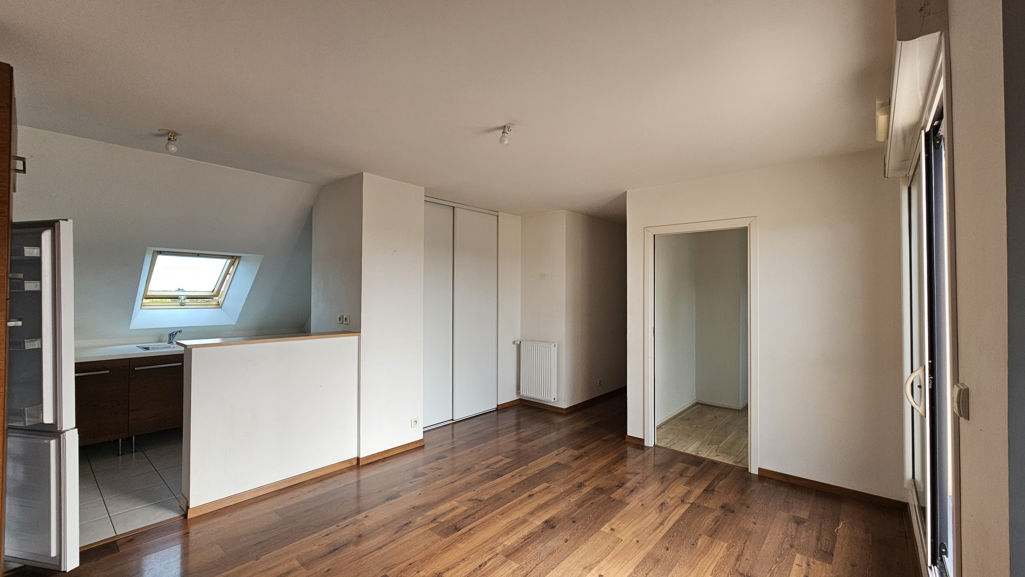 - Entrée avec placard, cuisine aménagée et équipée ouverte sur séjour salon donnant sur balcon (sud / sud-ouest), trois chambres, une salle de bains, WC.
