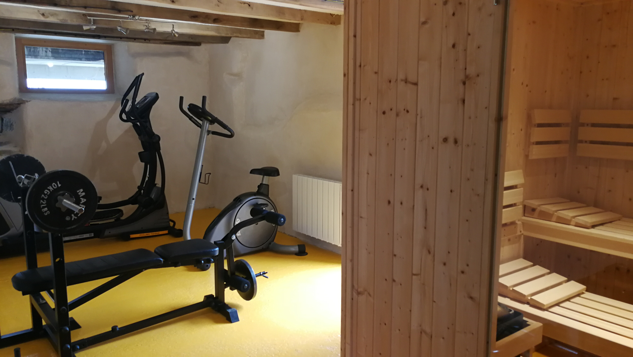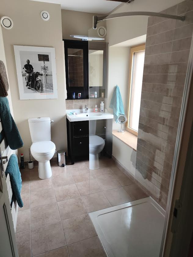 A l'étage un palier mène à 2 chambres et une salle de bain commune. Cette propriété dispose également en rez- de- jardin une pièce dédiée au sport avec sauna ( équipement sportif et sauna disponible en option,revendu séparement) , plusieurs dépendances dont une grange sur 2 niveaux de 80 m2, parfaite pour le stockage ou vos projets (gites, chambre d'hôtes)