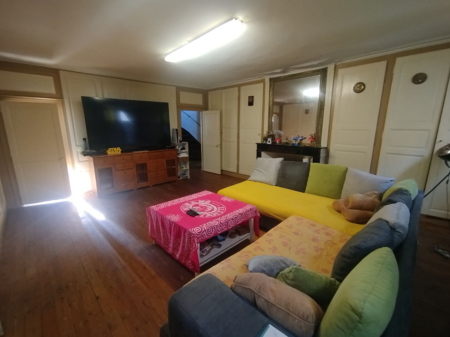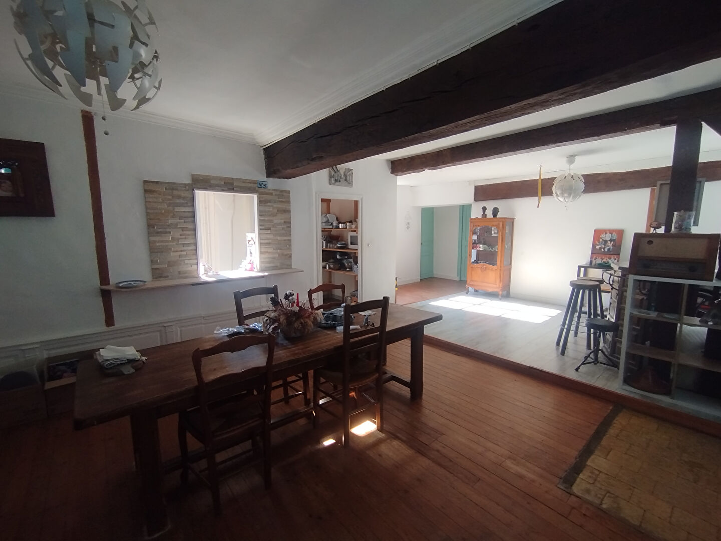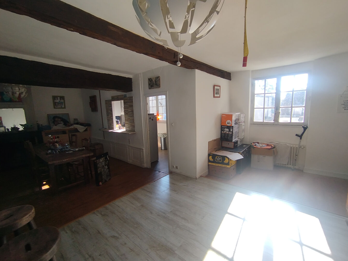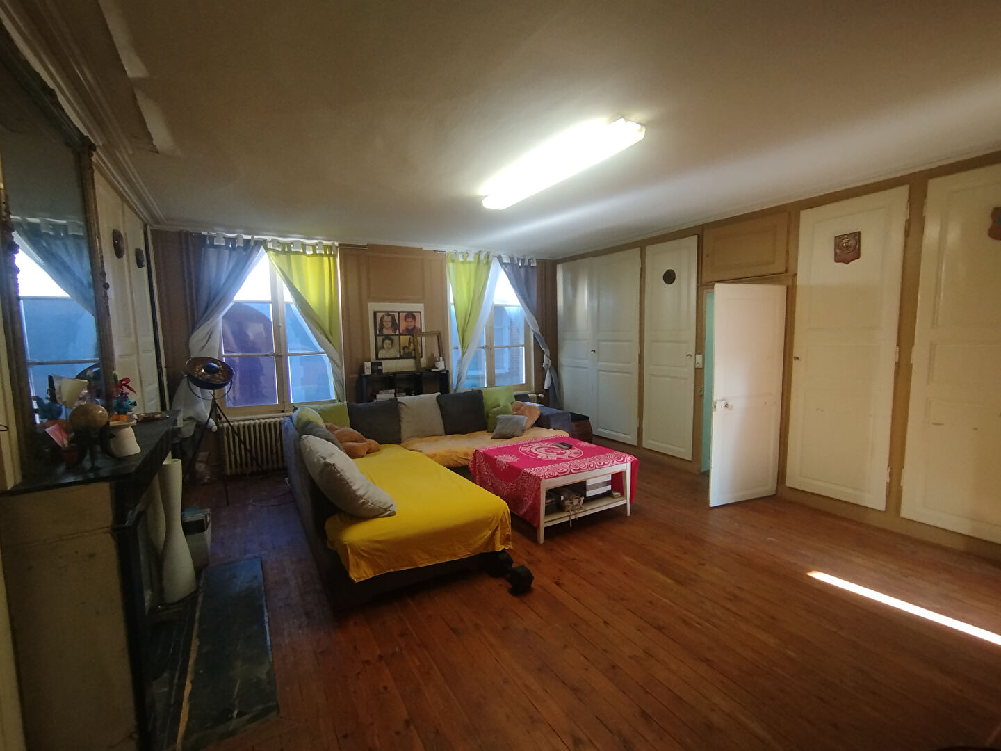 Belle hauteur sous plafond, éléments anciens conservés (cheminées, parquets, tomettes, carreaux de ciment)
