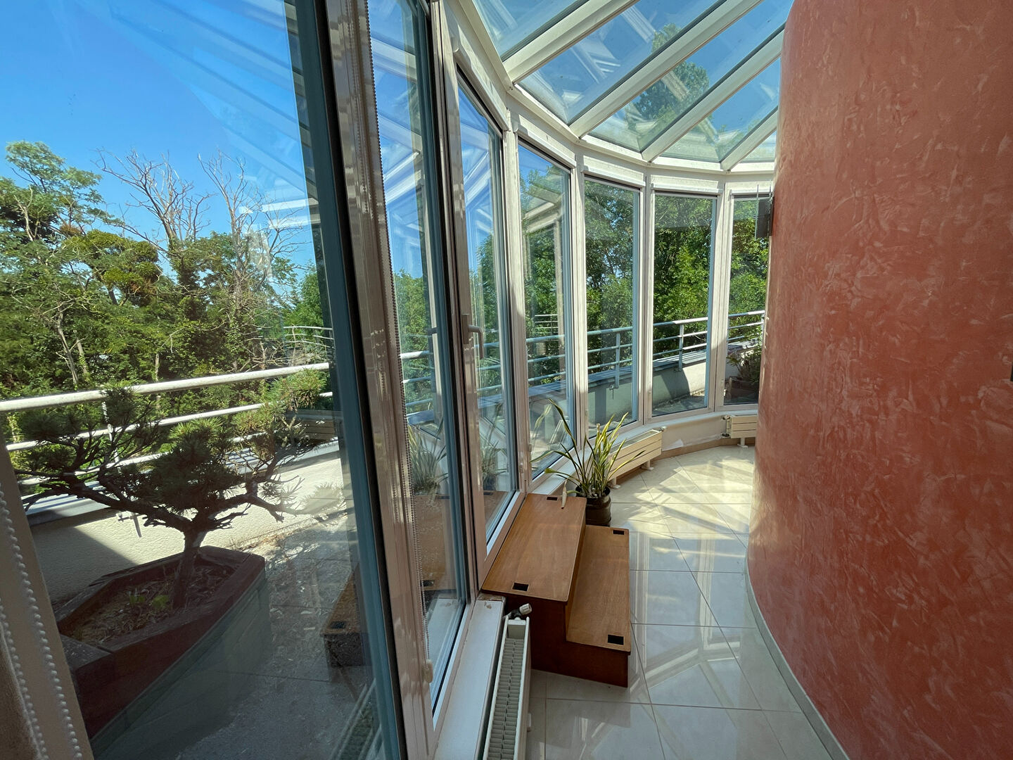Salon-séjour confortable avec de larges baies vitrées donnant sur plusieurs terrasses spacieuses et ensoleillées, offrant des vues dégagées et un cadre de vie privilégié.