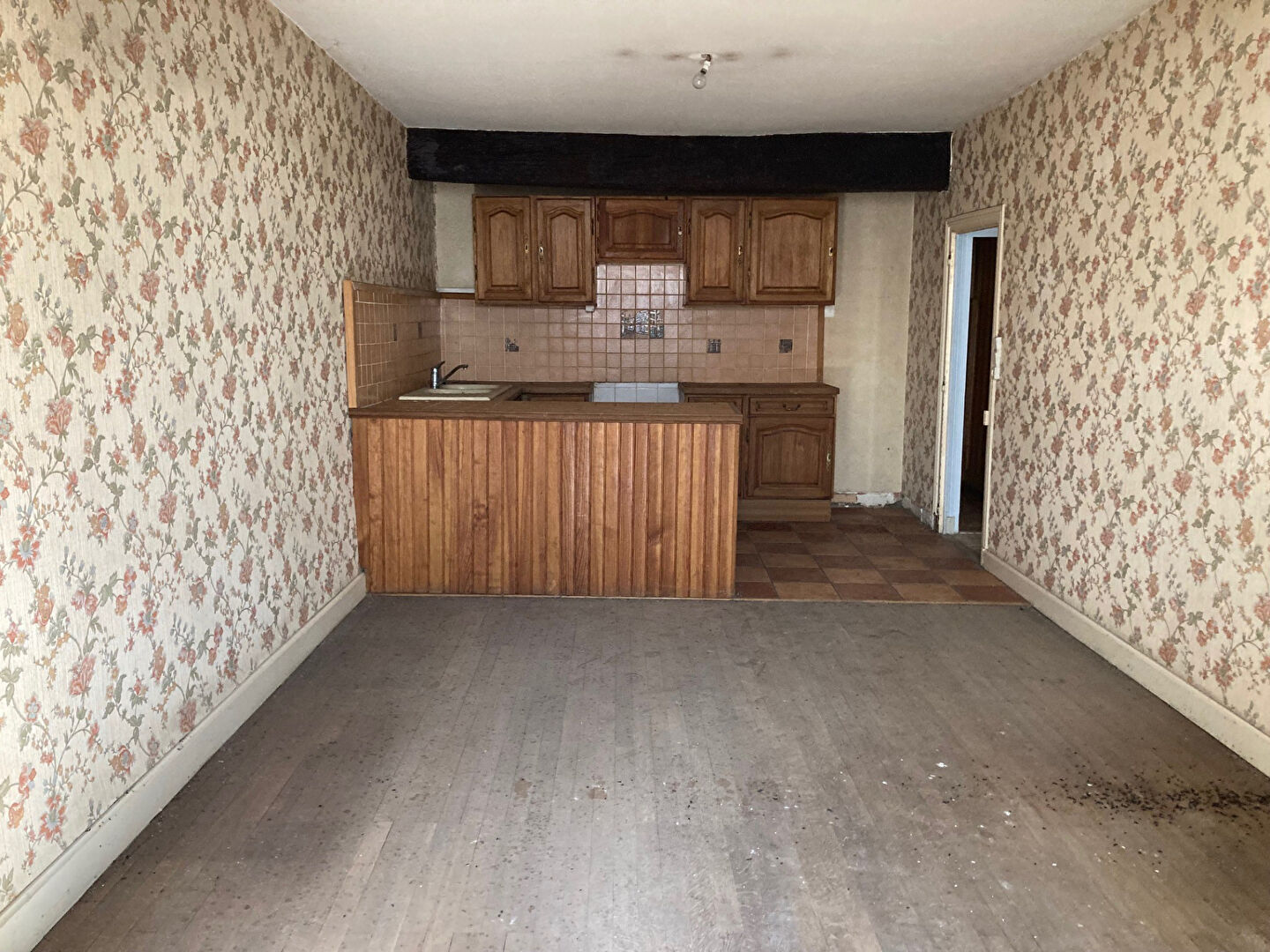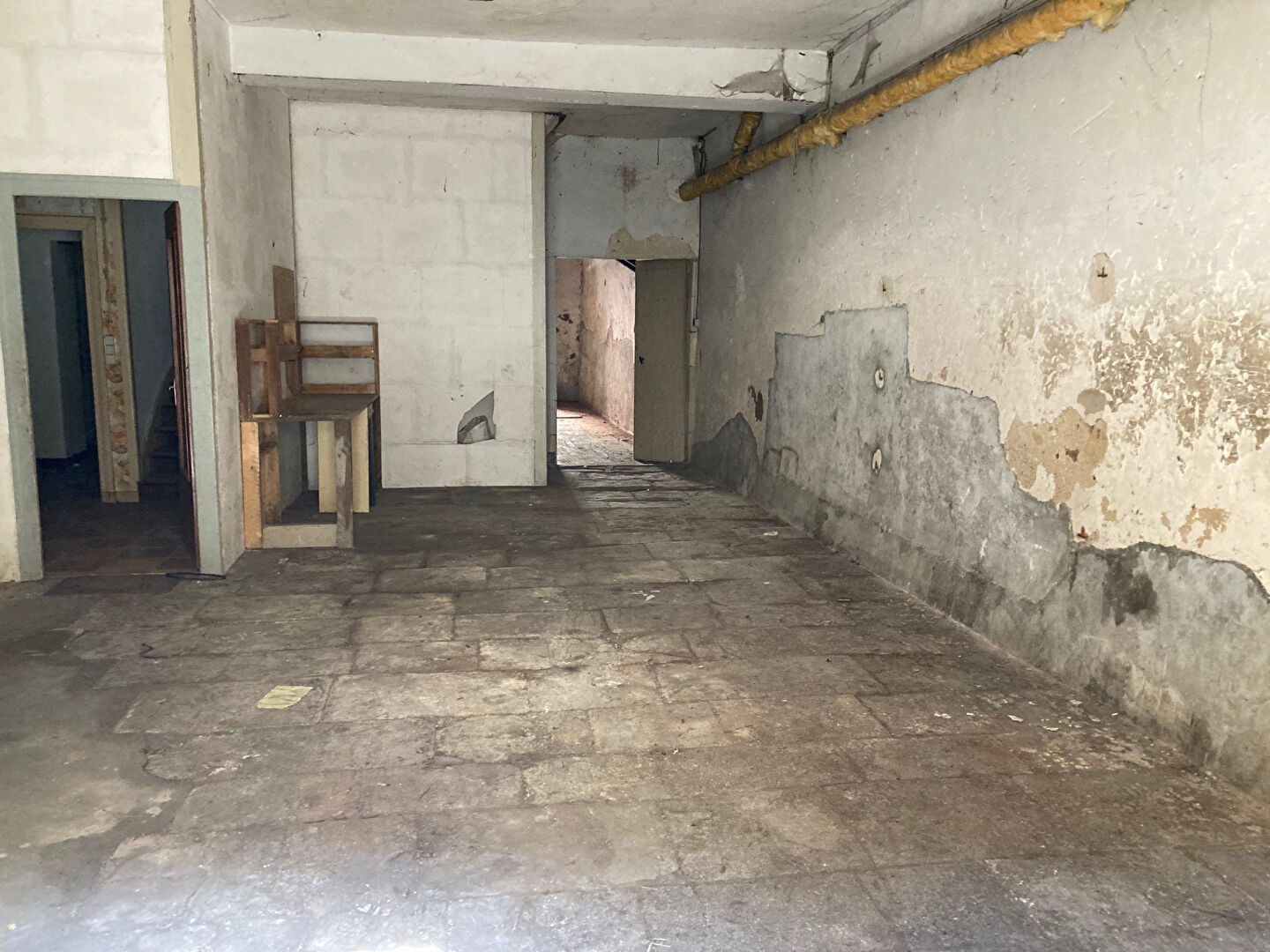 - au RDC : cuisine sur rue, arrière cuisine avec escalier, séjour, hall avec escalier, grand garage, petit bureau, sur l'arrière grande salle de stockage avec imposant mécanisme de pesage du grain, une grande pièce avec emplacement chaufferie.