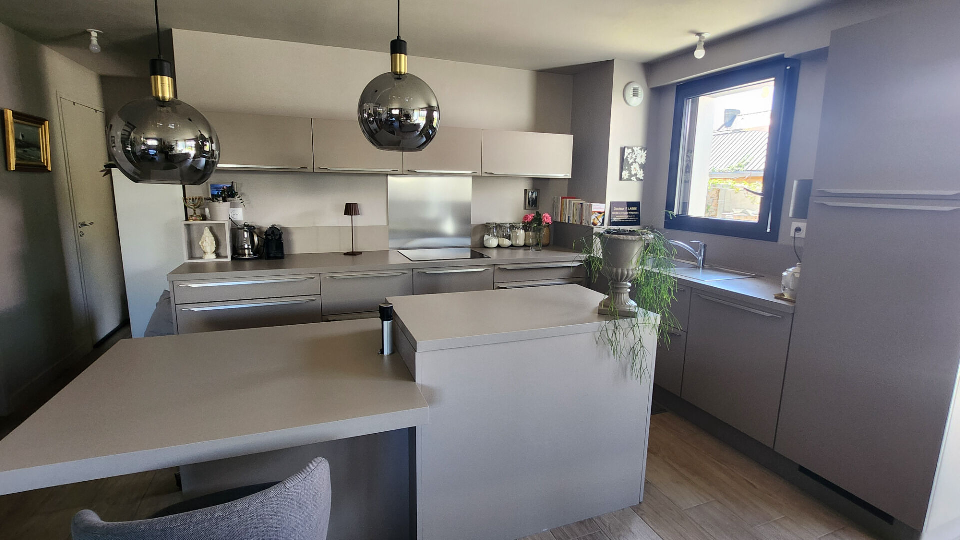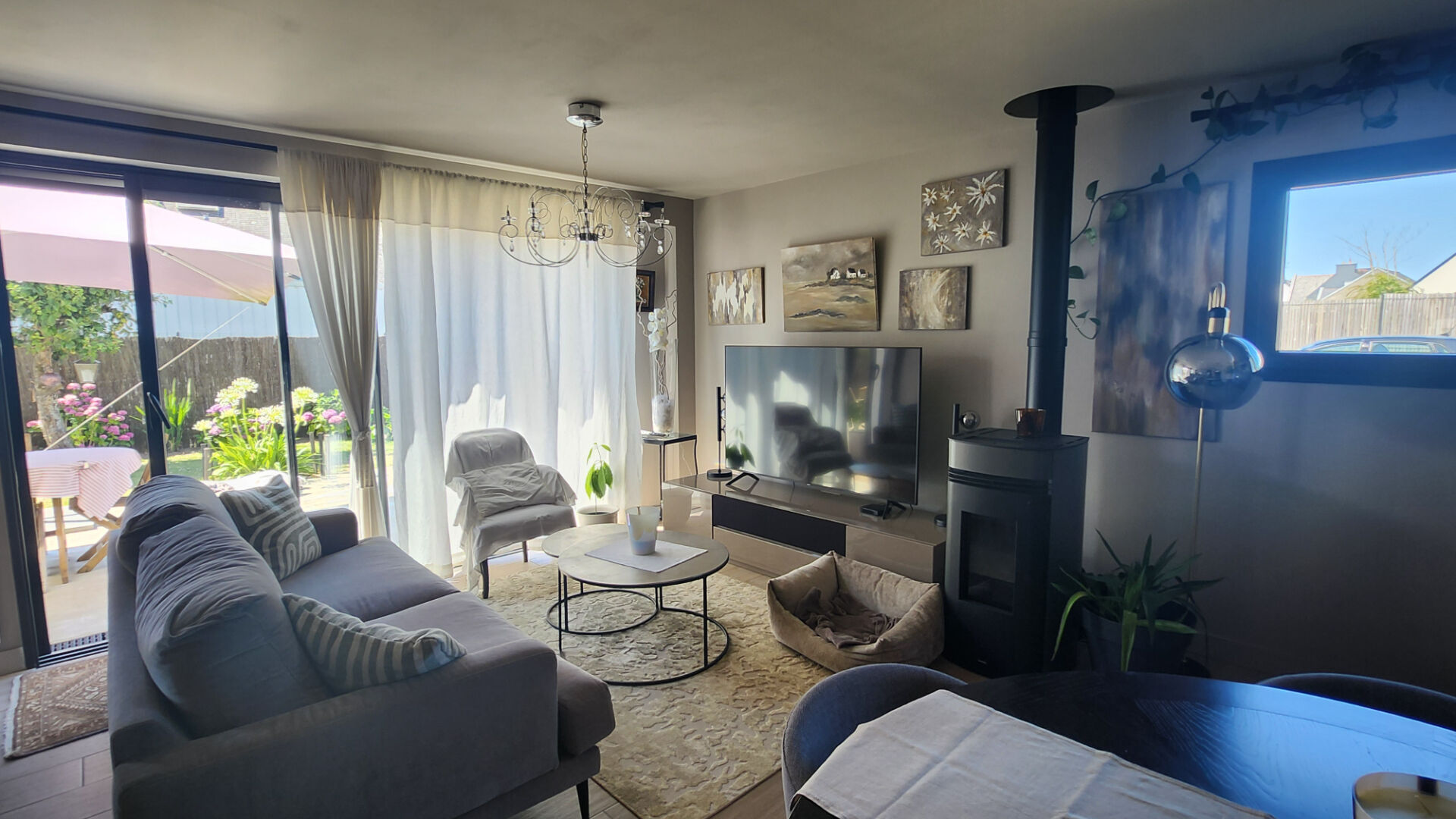 BELZ CENTRE - Maison de charme en ossature bois de 2022 comprenant au RDC: un salon-séjour avec poêle à granulés, une cuisine aménagée équipée, un cellier, une chambre avec salle d'eau attenante, un wc. A l'étage: un espace bureau / mezzanine, 2 chambres, une salle de bain avec wc. Garage. Beau jardin paysager d'environ 605 m². Commerces à proximité immédiate.