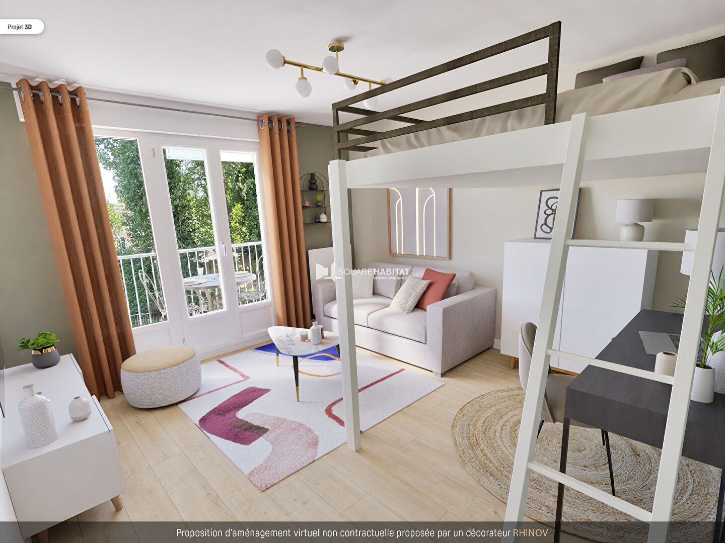 Dès l'entrée, un dressing aménagé optimise l'espace. La pièce de vie lumineuse, équipée d'un lit mezzanine, libère un véritable coin jour/nuit fonctionnel. Une cuisine aménagée et une salle d'eau complètent l'ensemble.