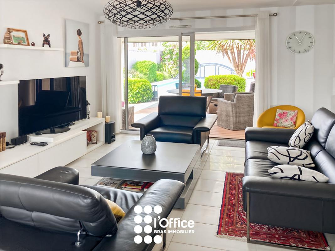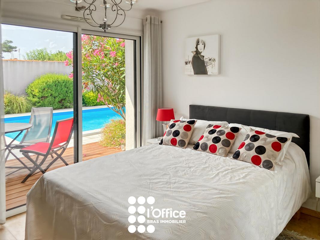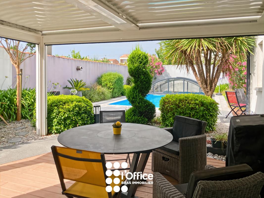 L'Office Bras Immobilier vous propose, quartier de la Chaume, une jolie maison récente de T4 en parfait état édifiée sur 410m2 de terrain clos et arboré avec piscine chauffée, terrasse avec pergola bio climatique - séjour/salon avec cuisine américaine équipée et aménagée, cellier, dégagement desservant wc avec lave-mains, salle d'eau et deux chambres avec placards - Etage : vaste chambre avec placard, salle d'eau et wc - garage avec faux grenier - local technique avec salle d'eau et wc - chauffage au sol par pompe à chaleur - Contacter Laurence ROUSSELEAU au 07 87 33 27 42 pour tous renseignements.