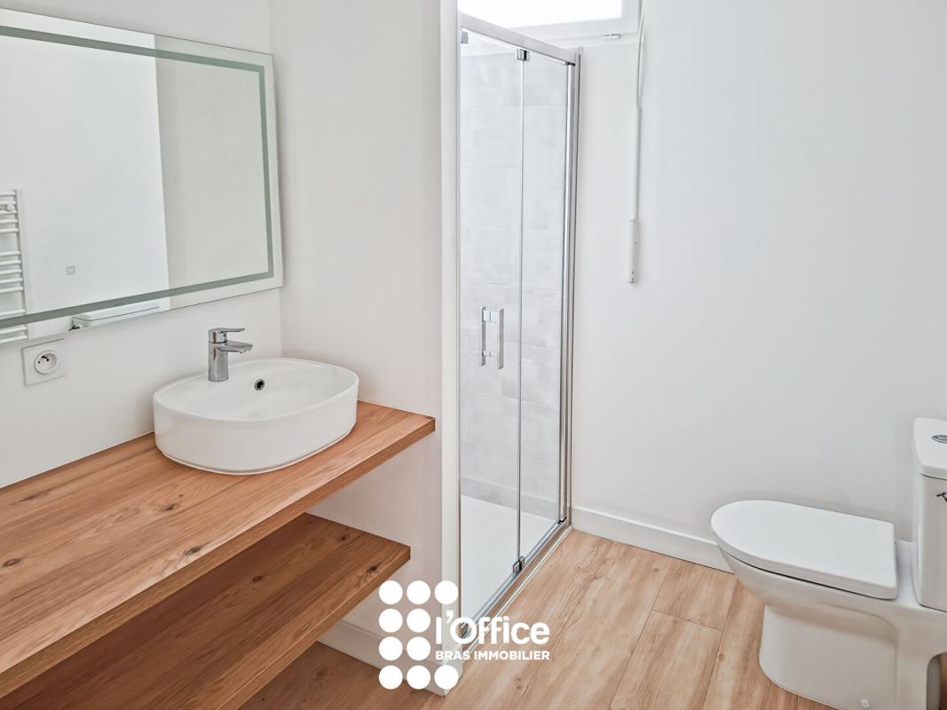 Emplacement idéal, commerces et plage à Pied, L'office Bras immobilier vous présente cet appartement T3 comprenant une pièce de vie, 2 chambres, salle d'eau, cellier et une terrasse.