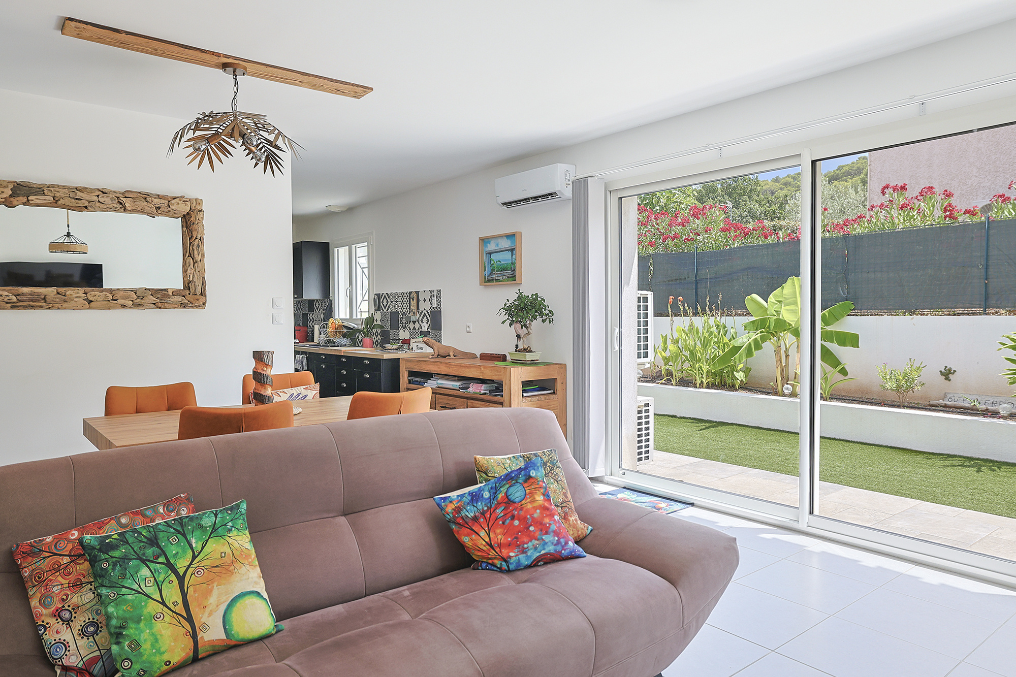Cette maison propose de Nombreuses Prestations de qualité ( équipé du Double vitrage PVC, Climatisation réversible, radiateurs électriques à inertie, chauffe eau thermodynamique, tout à l'égout ... )