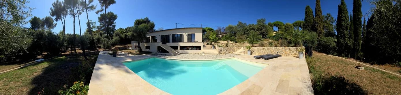 Une piscine sur un terrain en restanques de 2500m² avec de l'emprise au sol résiduelle.