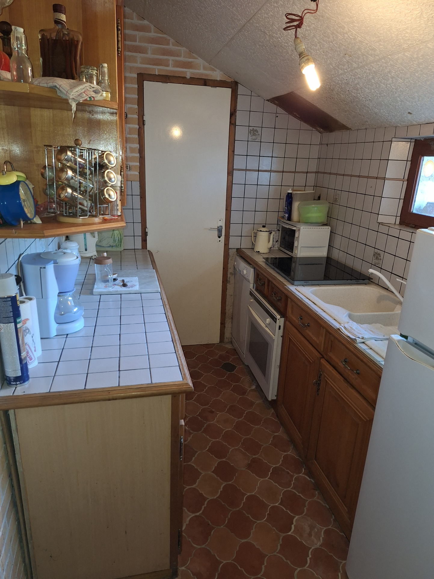 Habitation principale ,offrant au rdc: entrée véranda, pièce de vie avec départ escalier, petite cuisine donnant accès à une sde wc
