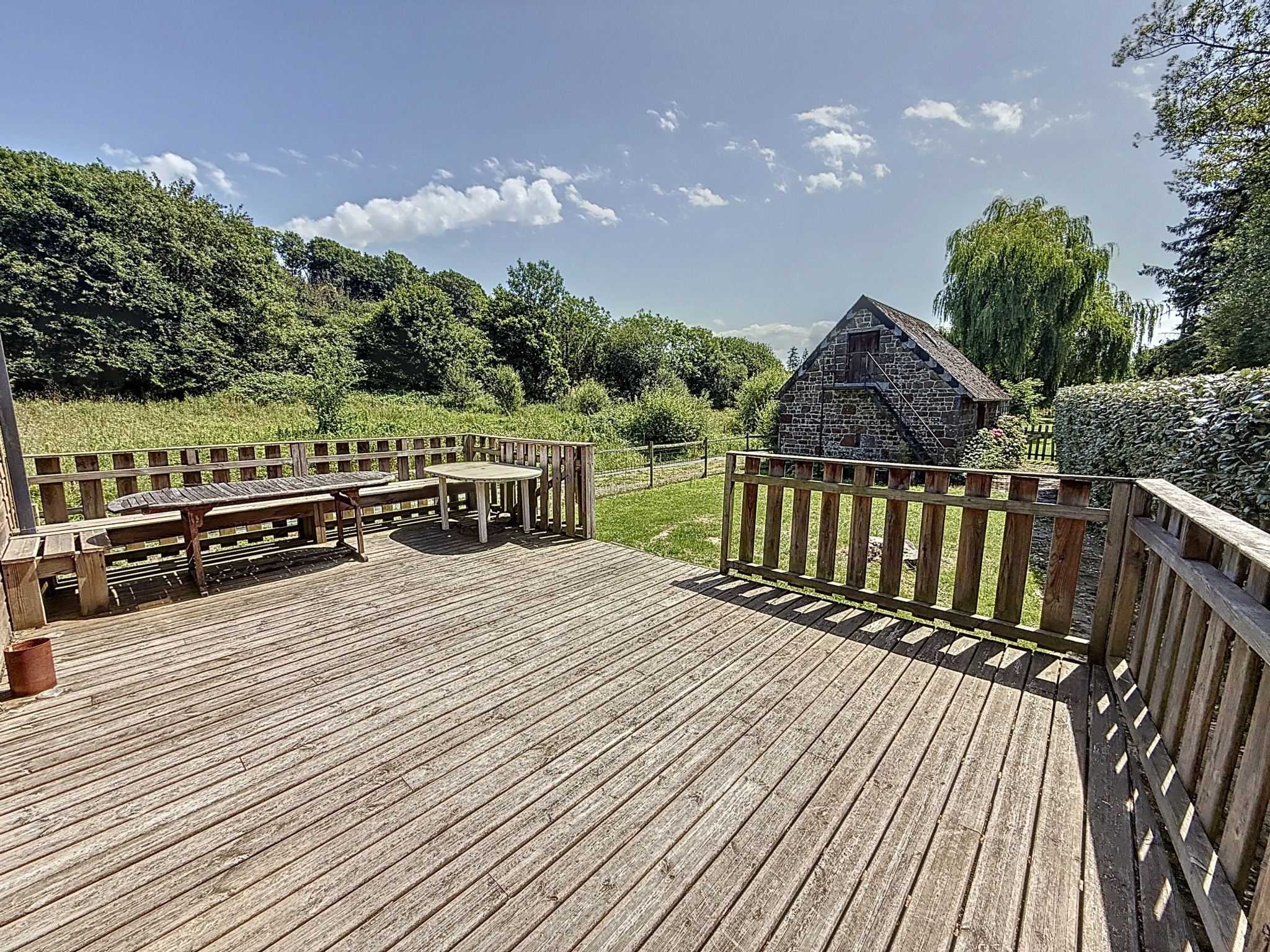 dans un cadre verdoyant, le CABINET FAUDAIS vous présente cette ancienne maison d'éclusier en bord de Vire située au bout d'un chemin sans voisinage proche. Elle dispose d'une belle pièce à vivre avec salle à manger, cuisine ouverte et son salon avec poêle à granule, on retrouve aussi au RDC une salle d'eau / WC et buanderie. A l'étage: un palier avec 2 chambres mansardées. Grande terrasse bois exposée SUD. Dépendance en pierre avec garage. Le tout sur 5070 m2 de terrain.