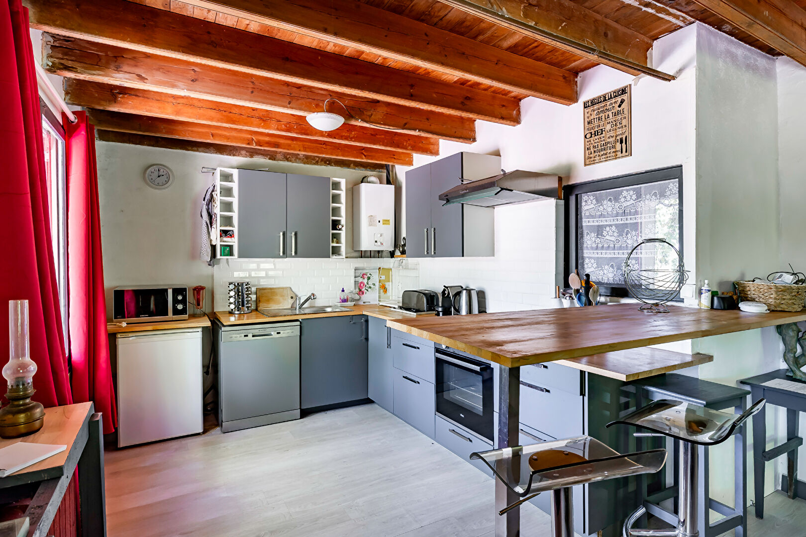 La maison offre une grande superficie de 180m² utile , avec des chambres spacieuses et lumineuses, tout en conservant son caractère traditionnel: Murs en pierre et poutres apparentes . Une belle grange attend vos projets, comme , stockage, atelier, ou même pour la transformer en gîte ou en espace de loisirs.