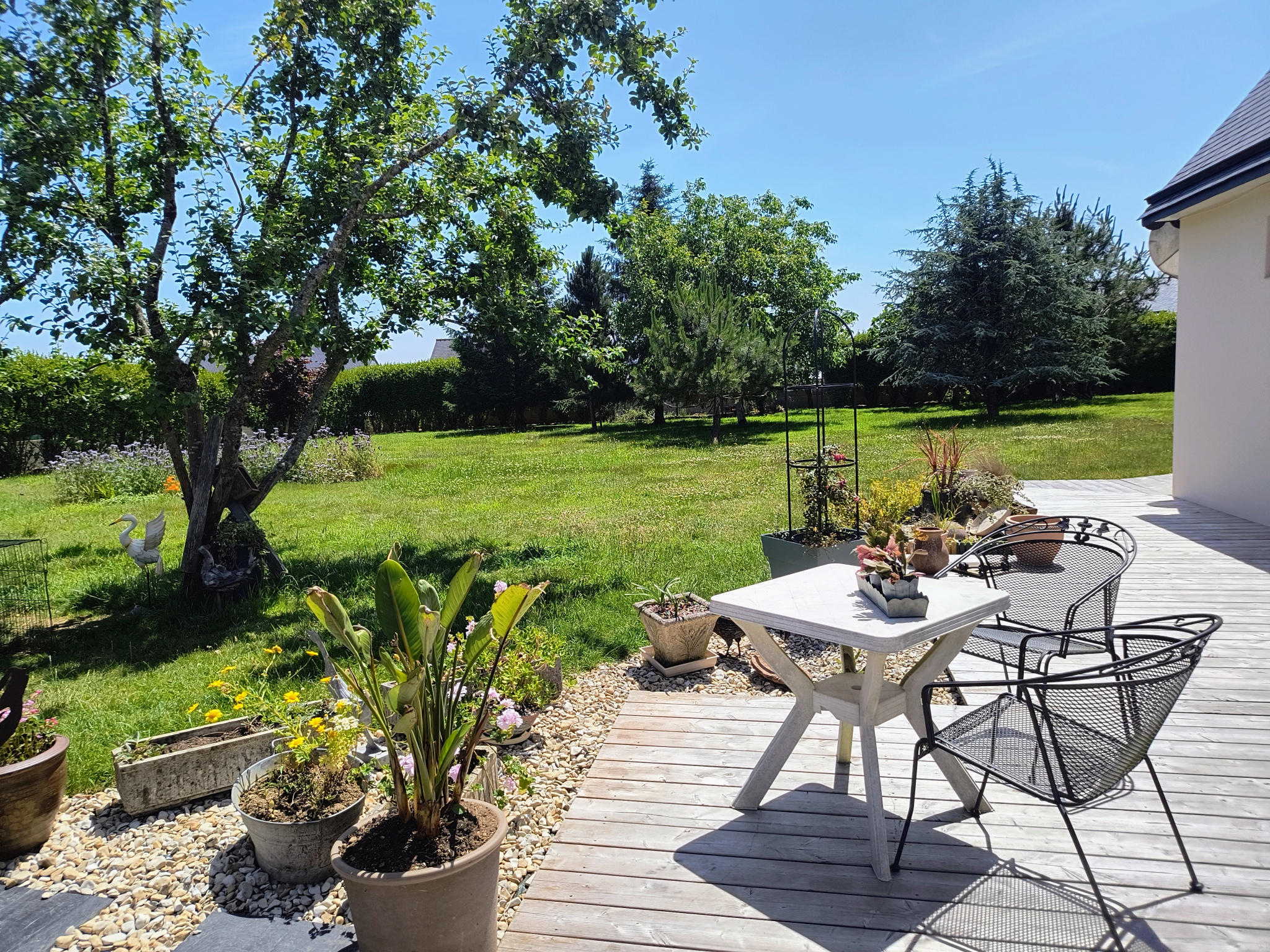 Garage attenant en limite de proprièté, sortie arrière sur terrasse