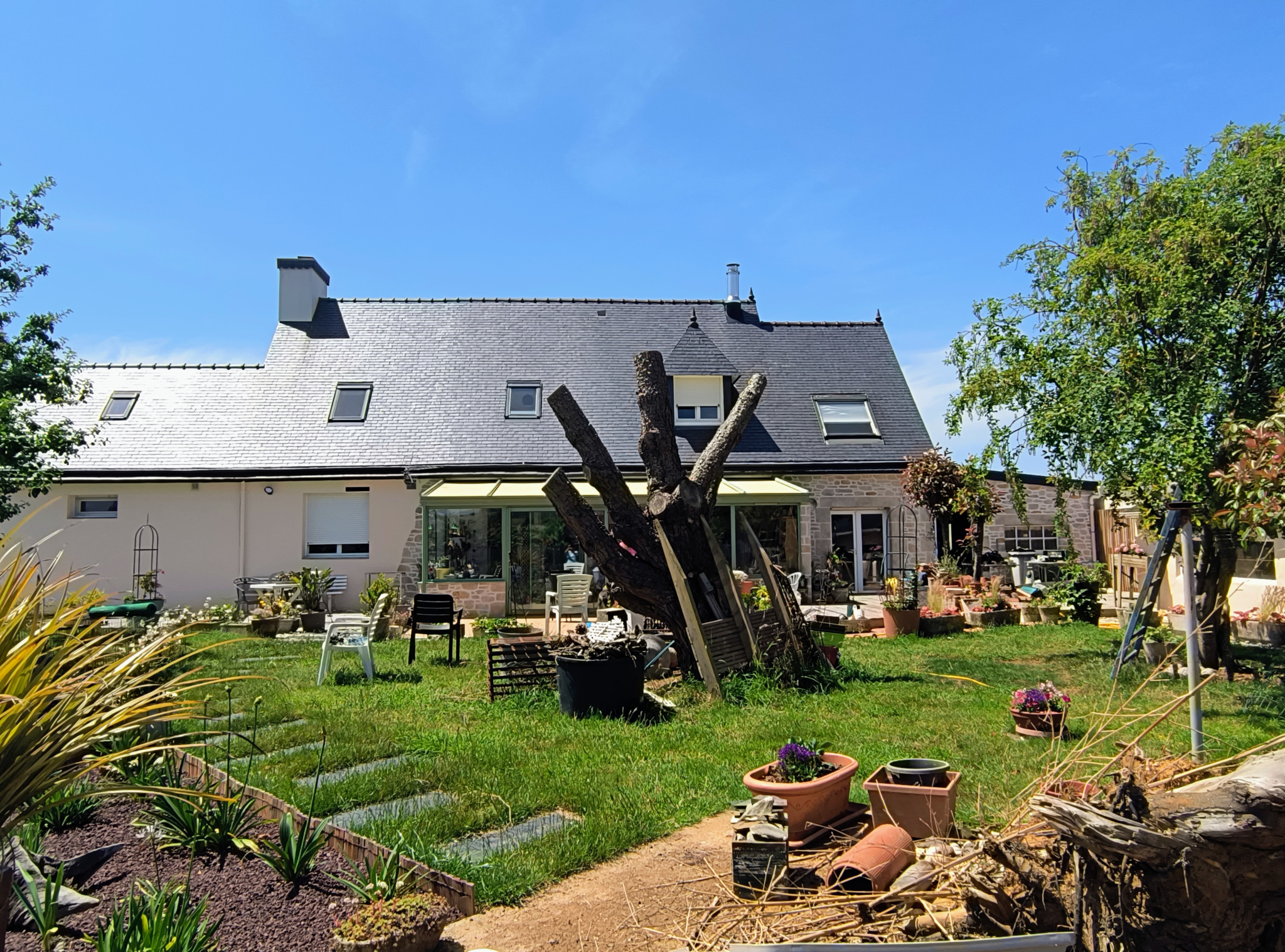 Belle propriété entrenue avec soin sur un terrain d'angle clos et paysagé de 3400 2 dans un cadre de vie exceptionnel, entre mer et montagne ( LE MENEZ-HOM). accès rapide à la presqu'île de CROZON ,de la baie de DOUARNENEZ et l'AULNE MARITIME.
