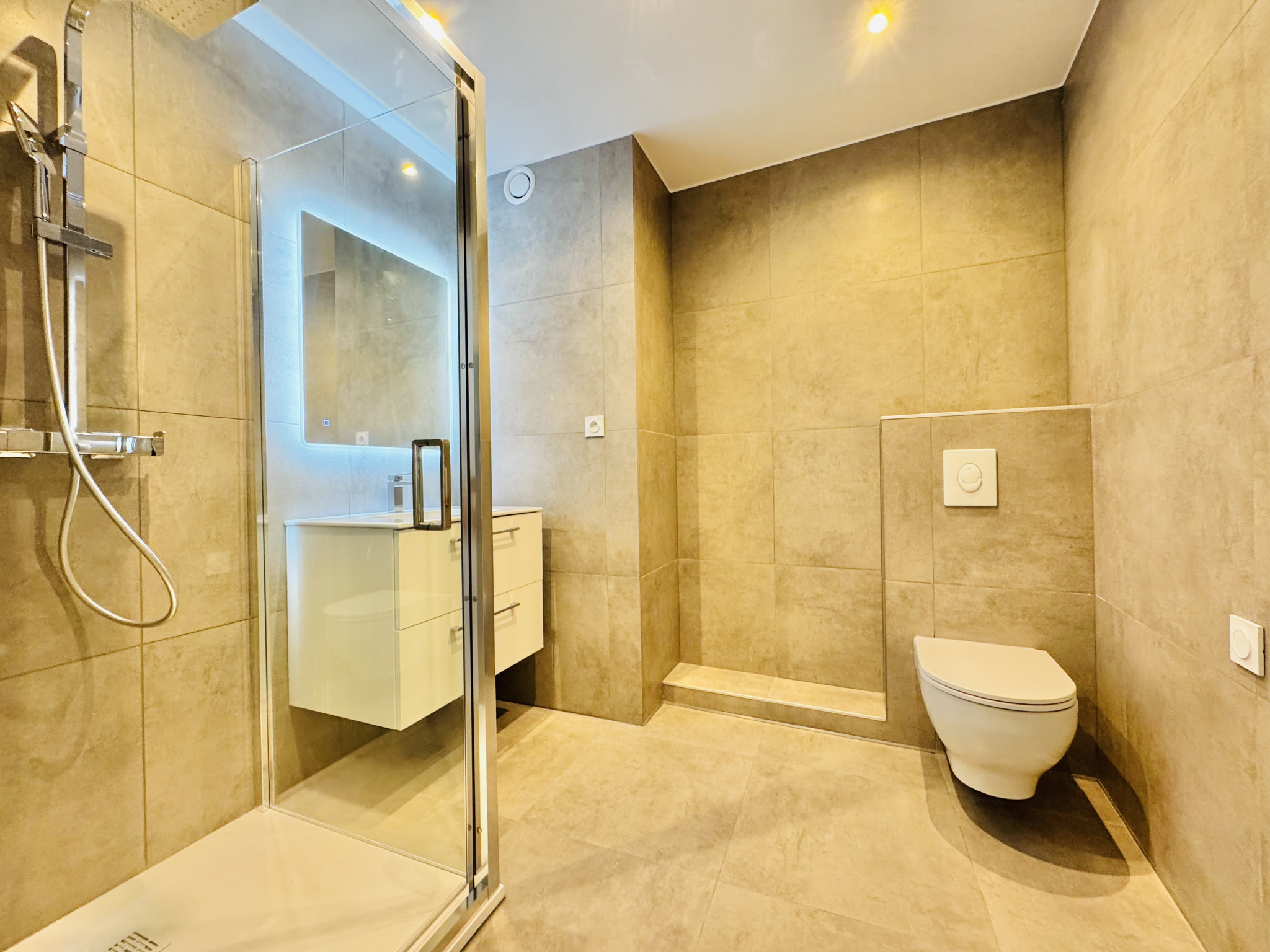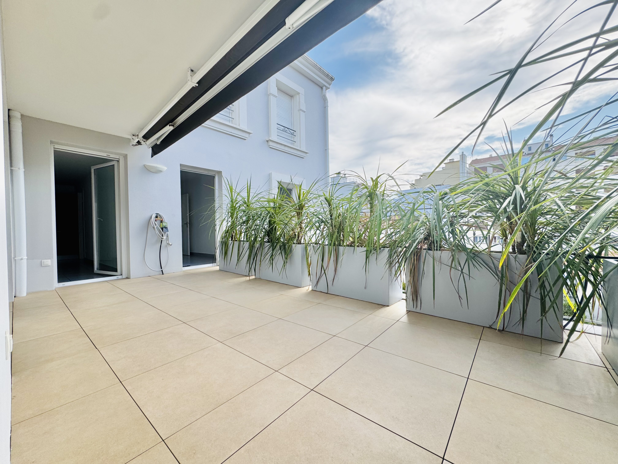 En plein coeur du centre-ville, dans un immeuble de grand standing datant de 2015, superbe appartement de type 3 ouvrant sur une vaste terrasse au calme de 24,05 m2. L'appartement, en excellent état, bénéficie de prestations de qualité : cuisine équipée Porcelanosa, volets roulants électriques, climatisation réversible, accès PMR... Le plus : Un double garage en sous-sol complète ce bien.