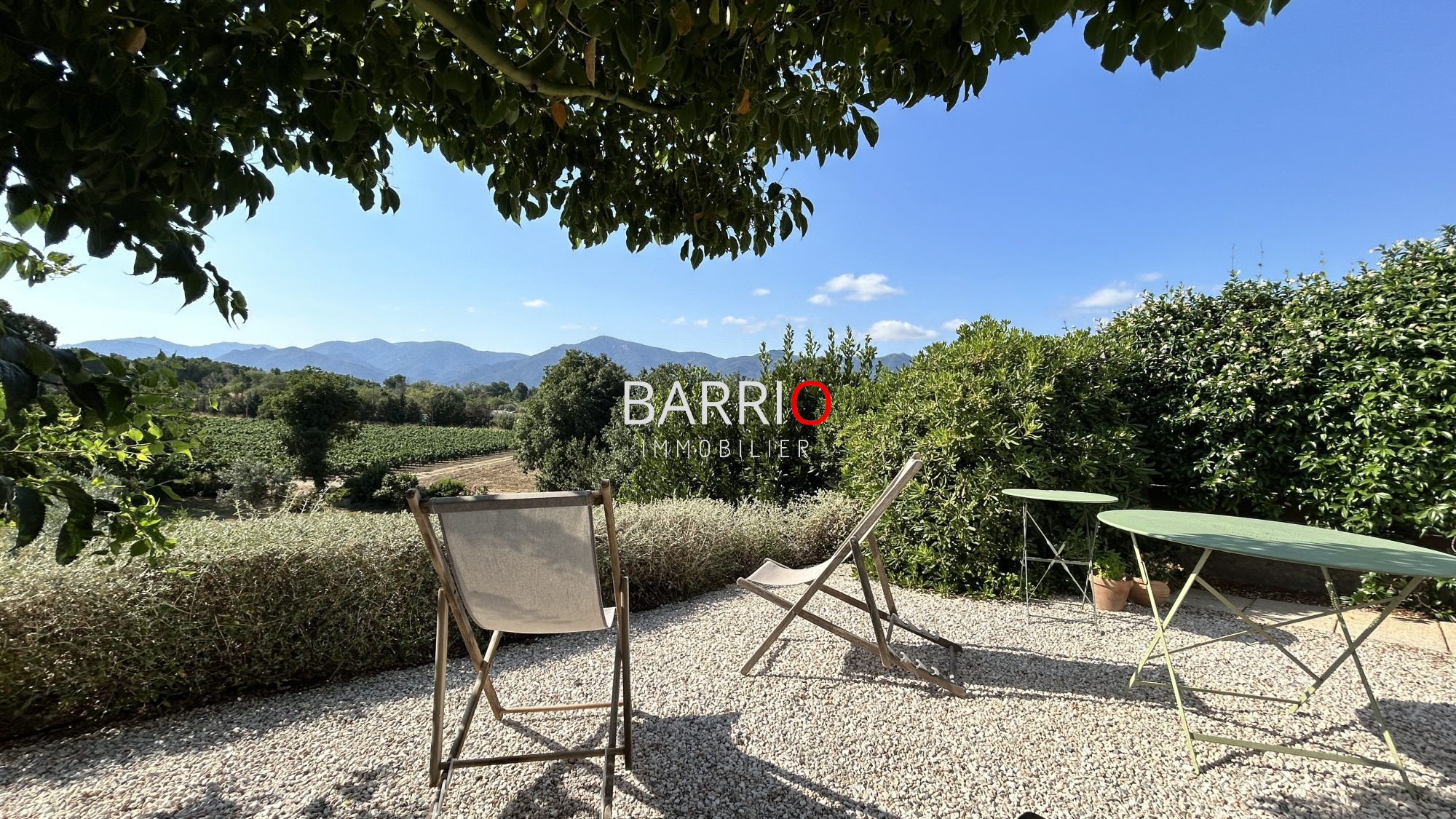 Ces pièces de vie se prolongent naturellement vers une terrasse où le regard se perd? Une vue panoramique, sans aucun vis-à-vis, seulement la nature, les champs d'olivier et de vignes et les Albères pour horizon. Une invitation permanente à s'asseoir, respirer, et profiter d'un décor vivant et serein.