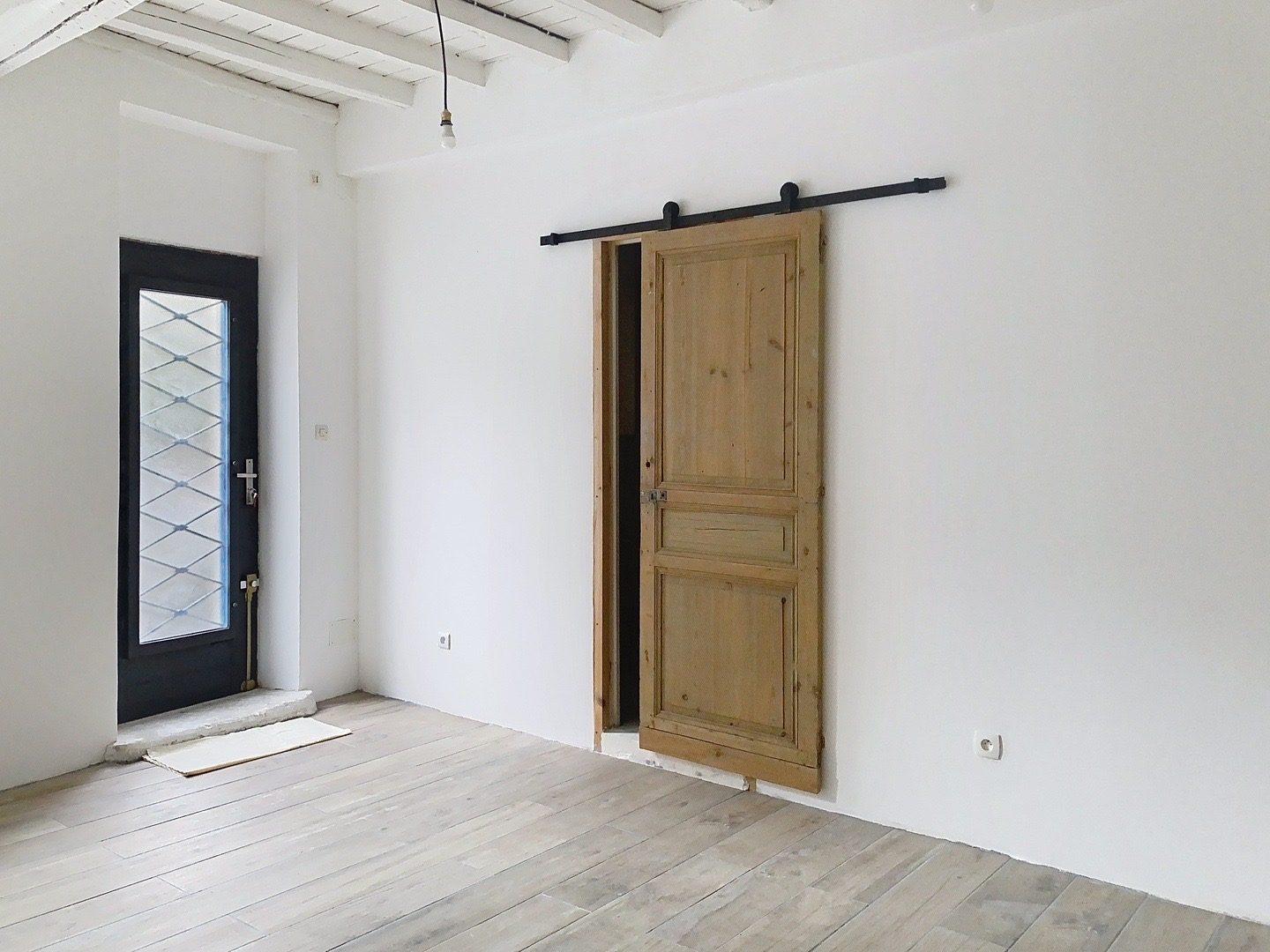 Après le passage de l'escalier, un salon / cuisine donnant sur une terrasse avec un cabanon et un jardin clos de murs. Ce dernier donne sur une autre rue avec un portail qui permet de rentrer une voiture.