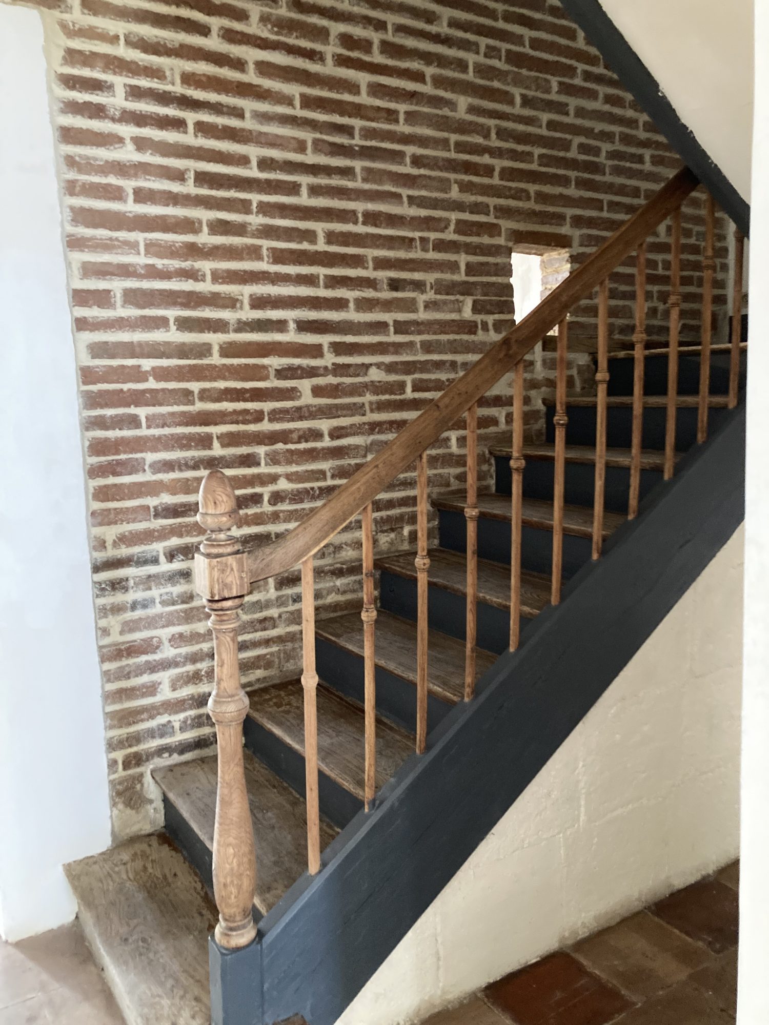 Au 1er étage, un vaste palier qui dessert 3 chambres (de 20, 15 et 9,5 m²), une salle de bain avec toilettes séparées.