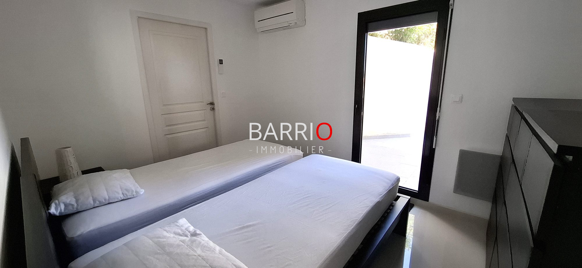 Elle se compose de trois chambres, parfaites pour accueillir famille et amis, ainsi qu'un espace de vie lumineux ouvrant sur une grande terrasse avec vue panoramique. Profitez également d'une piscine privée, idéale pour se détendre tout en admirant la Méditerranée.
