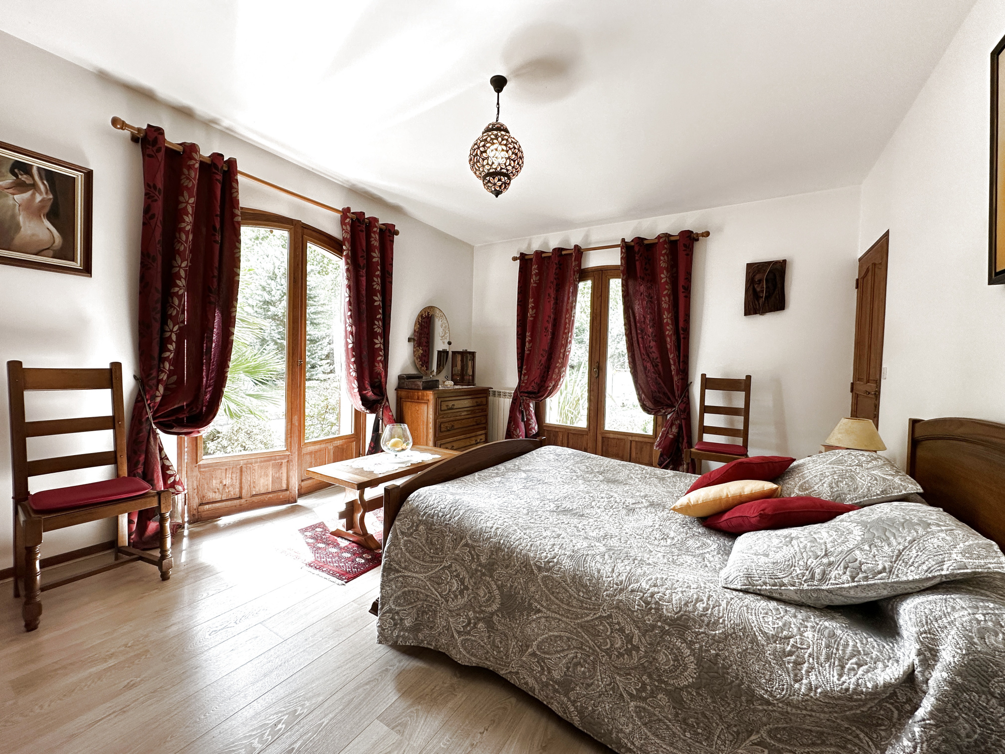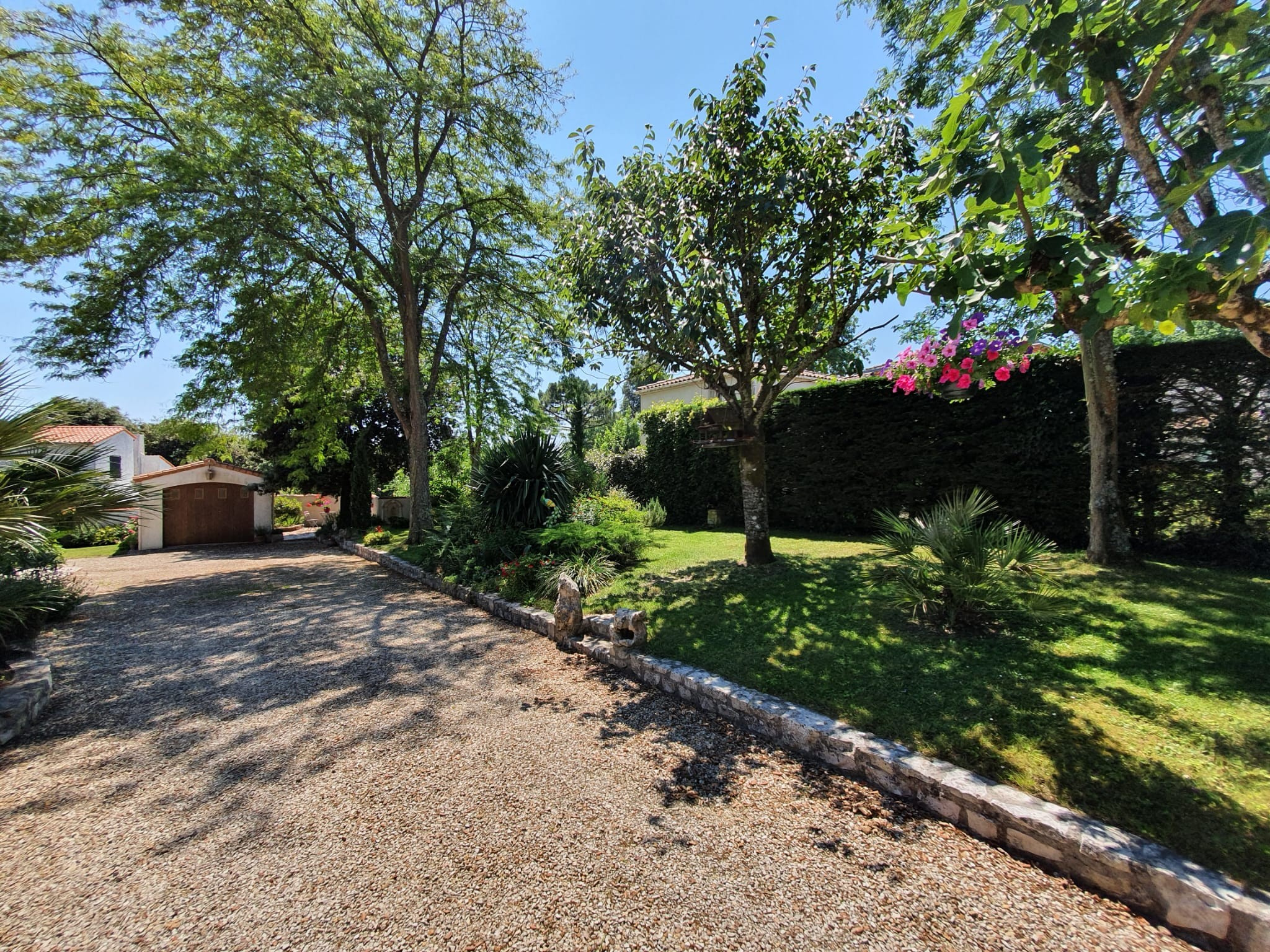 MESCHERS-SUR-GIRONDE (17) - A seulement 350 m de la plage des Vergnes et de la plage des Nonnes, cette belle maison offre un cadre de vie privilégié, entre mer et forêt, dans l'un des secteurs les plus recherchés de la commune. Implantée au coeur d'un terrain arboré de 1500 m2, la bâtisse, entourée par son jardin intime et soigneusement entretenu, profite d'une belle exposition Sud Ouest. En rez-de-chaussée, grande entrée sur vaste séjour traversant avec cheminée. Cuisine ouverte et équipée conviviale. Deux grandes chambres et une salle d'eau permettent de vivre de plain-pied. A l'étage, deux chambres supplémentaires, dont l'une avec solarium, douche et wc. Deux grands garages attenants parfaits pour abriter véhicules ou créer un atelier avec une cave en sous-sol. Un troisième garage indépendant de 25 m2 est idéal pour un véhicule de collection. Meschers est une station balnéaire dynamique, située à 15 minutes de Royan, connue pour ses falaises, ses criques et ses balades en forêt. Un lieu de vie idéal à l'année ou pour une résidence secondaire de qualité.