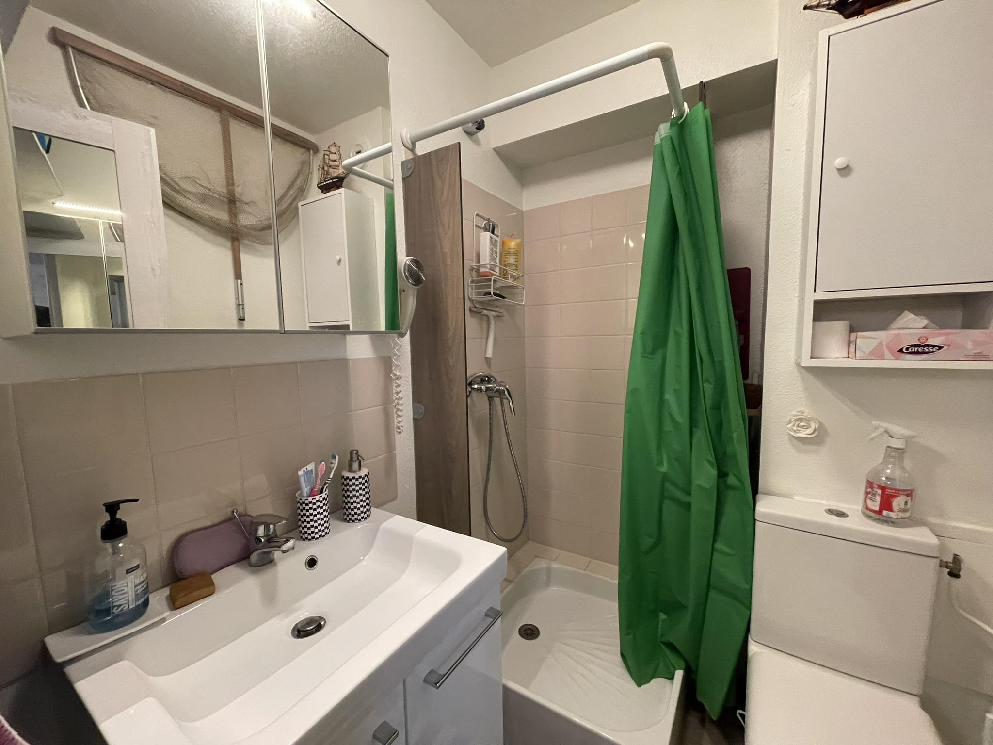 Appartement de type F1 situé au sein d'une copropriété calme à proximité du golf et à 5 minutes à pied de la mer.