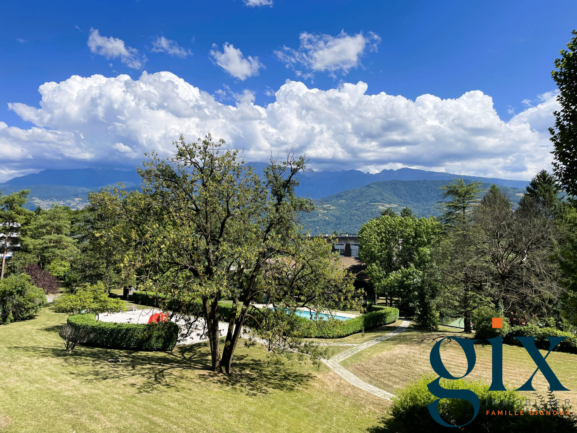 Appartement Spacieux, vue sur Belledonne et Vercors avec Piscine Chauffée, Tennis et Parc arboré.