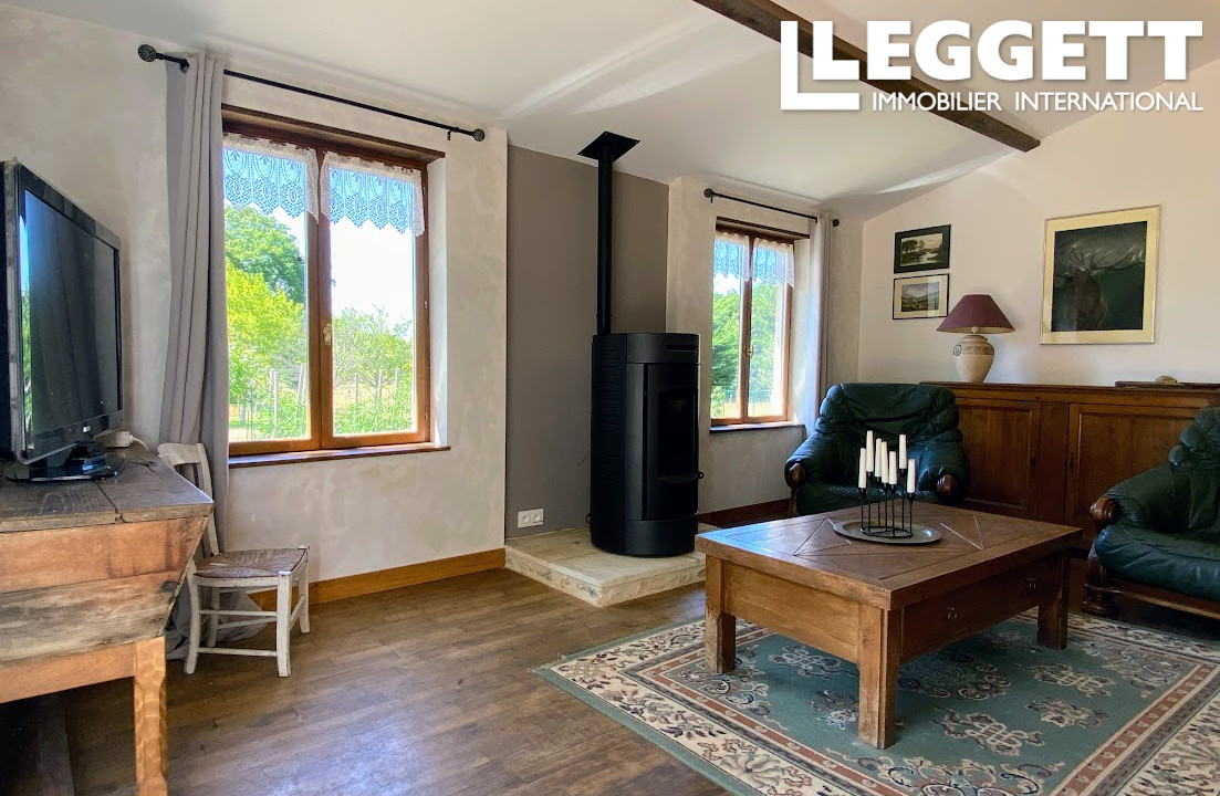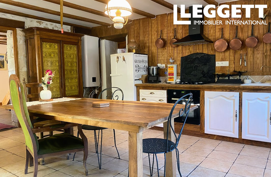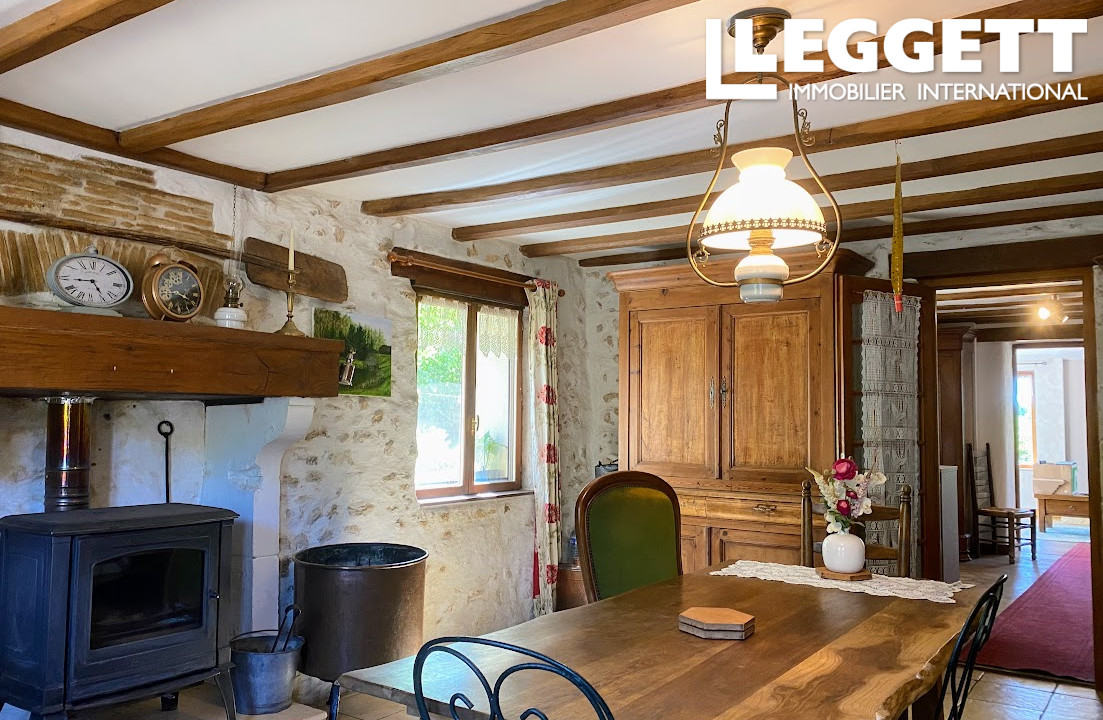 Avec des parquets anciens, des pierres et poutres apparentes, un poêle à granulés récent et un poêle à bois, elle offre le charme et le confort des maisons chaleureuses et accueillantes.