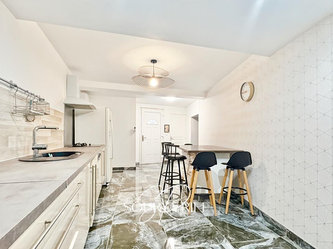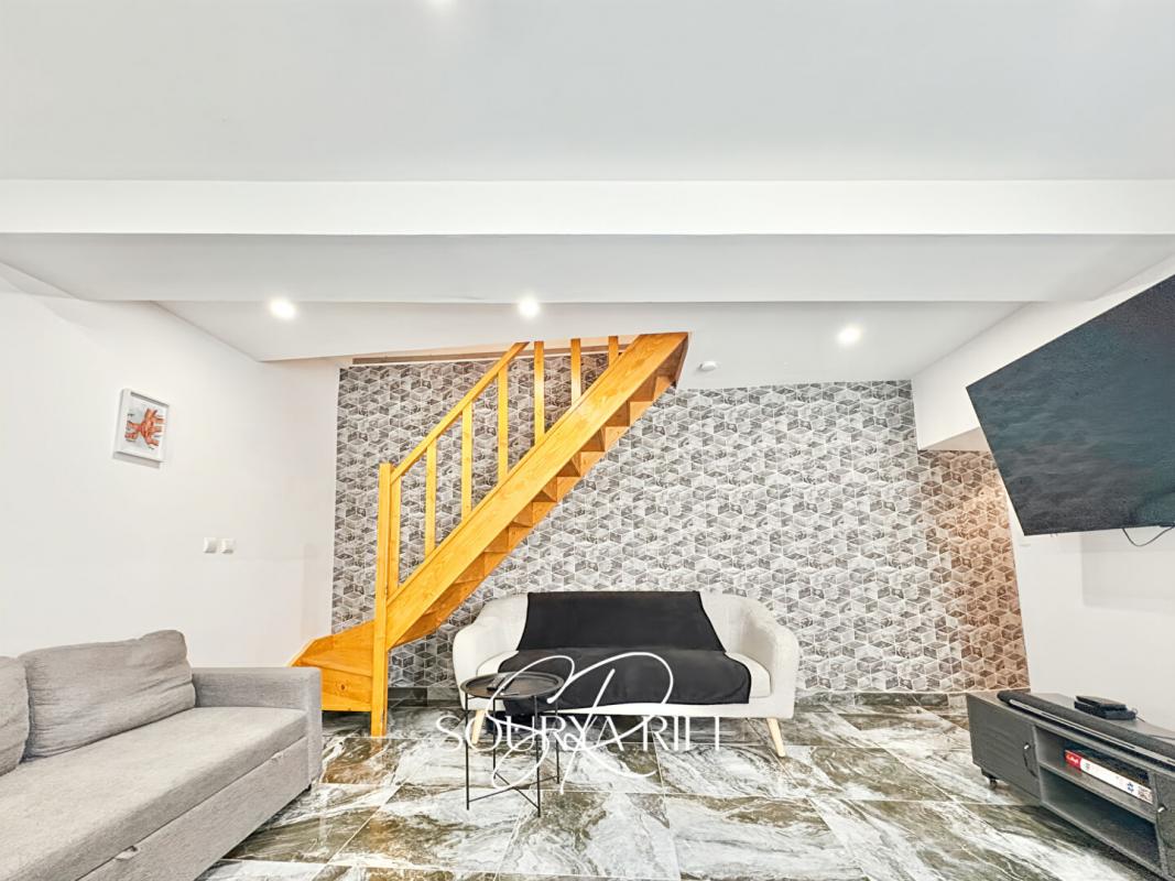 Au rez-de-chaussée, une cuisine équipée indépendante et un salon cosy complètent un espace de vie chaleureux, avec un WC.