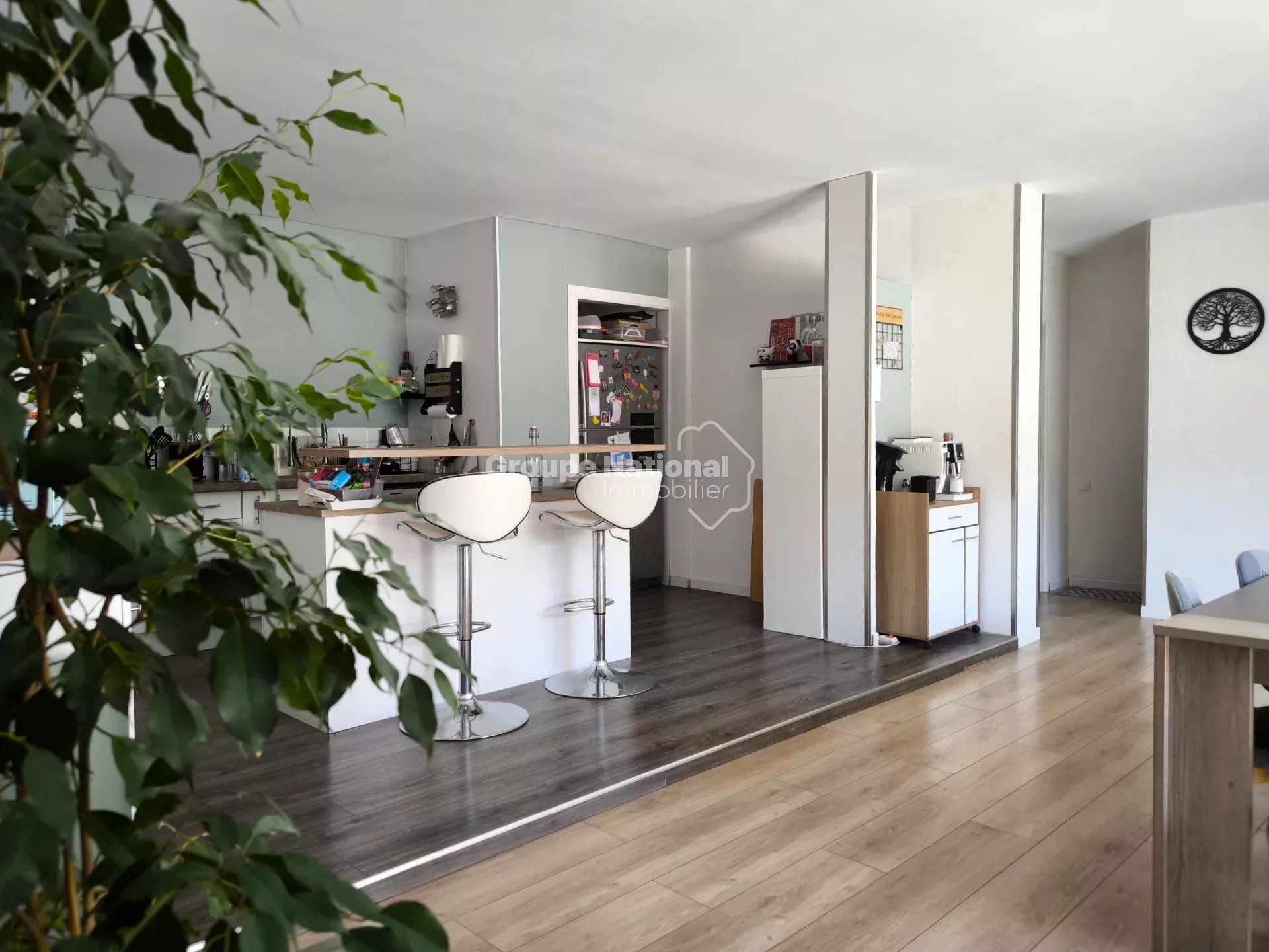 Au 1er étage un appartement T4 climatisé de 120 m² + 100 m² de terrasse, Il est composé d'un salon, cuisine,