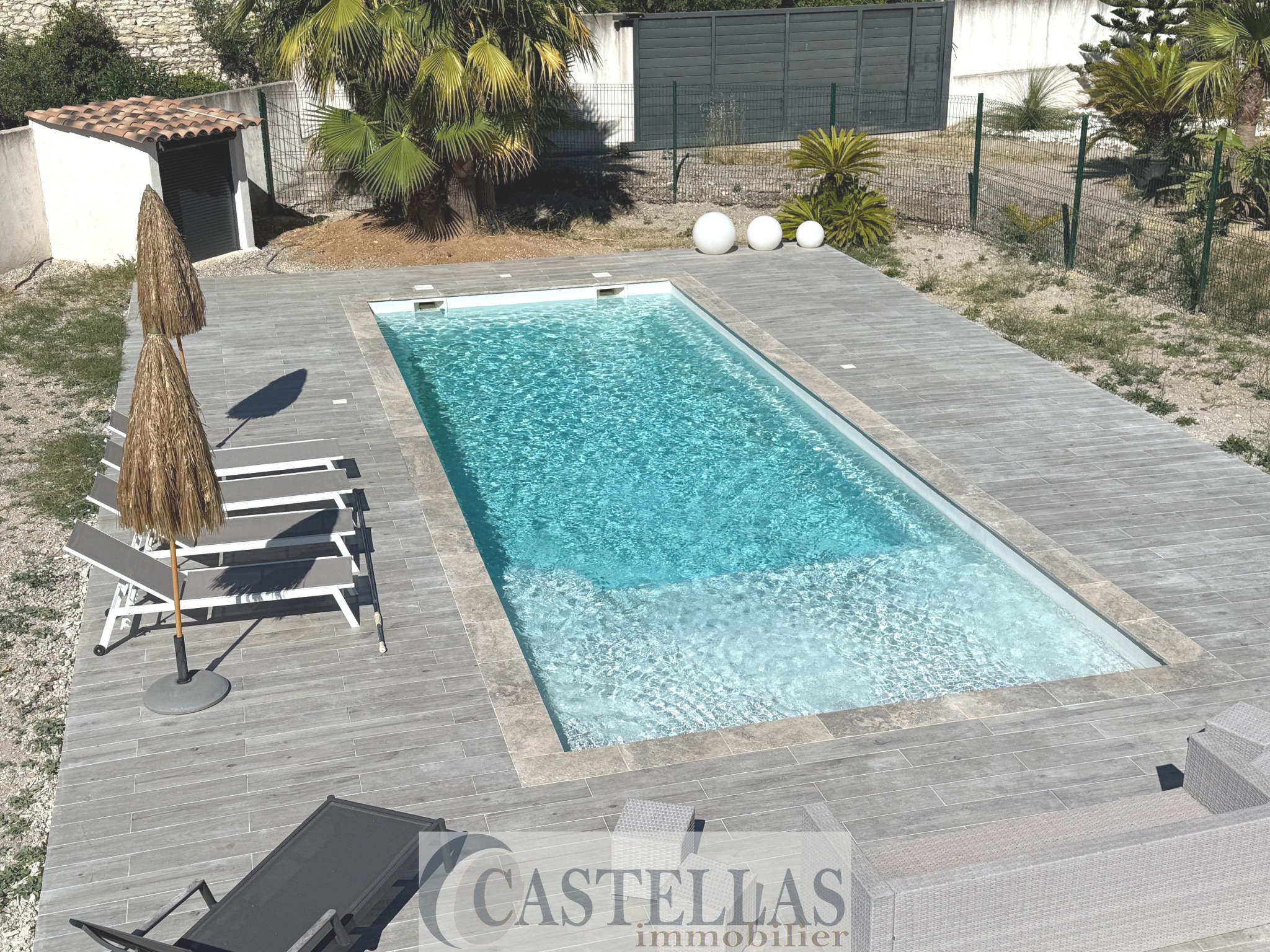 Terrain plat de 1792 m2 avec piscine.