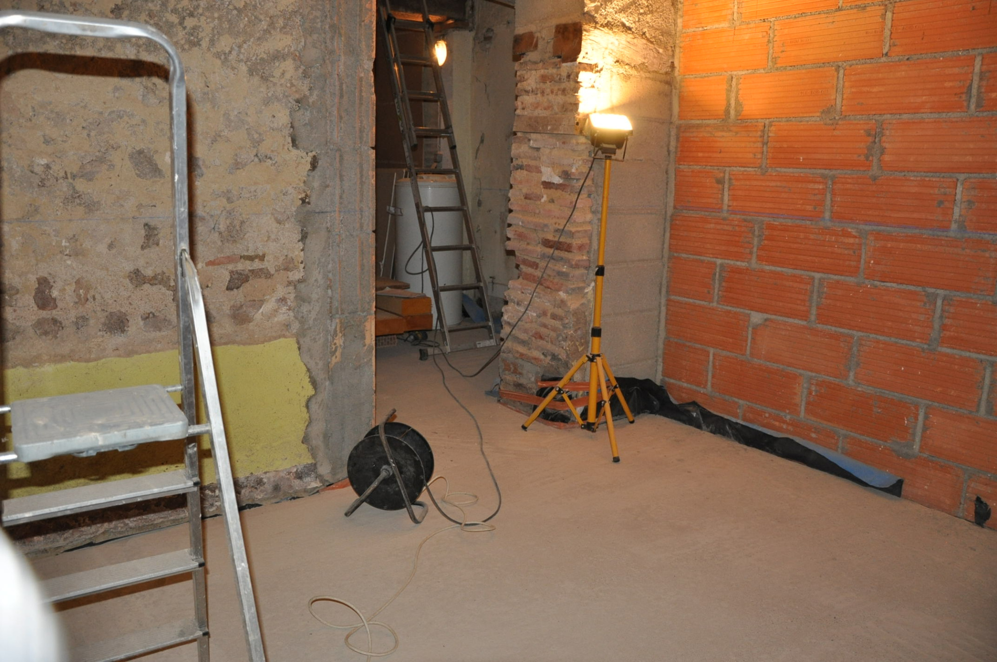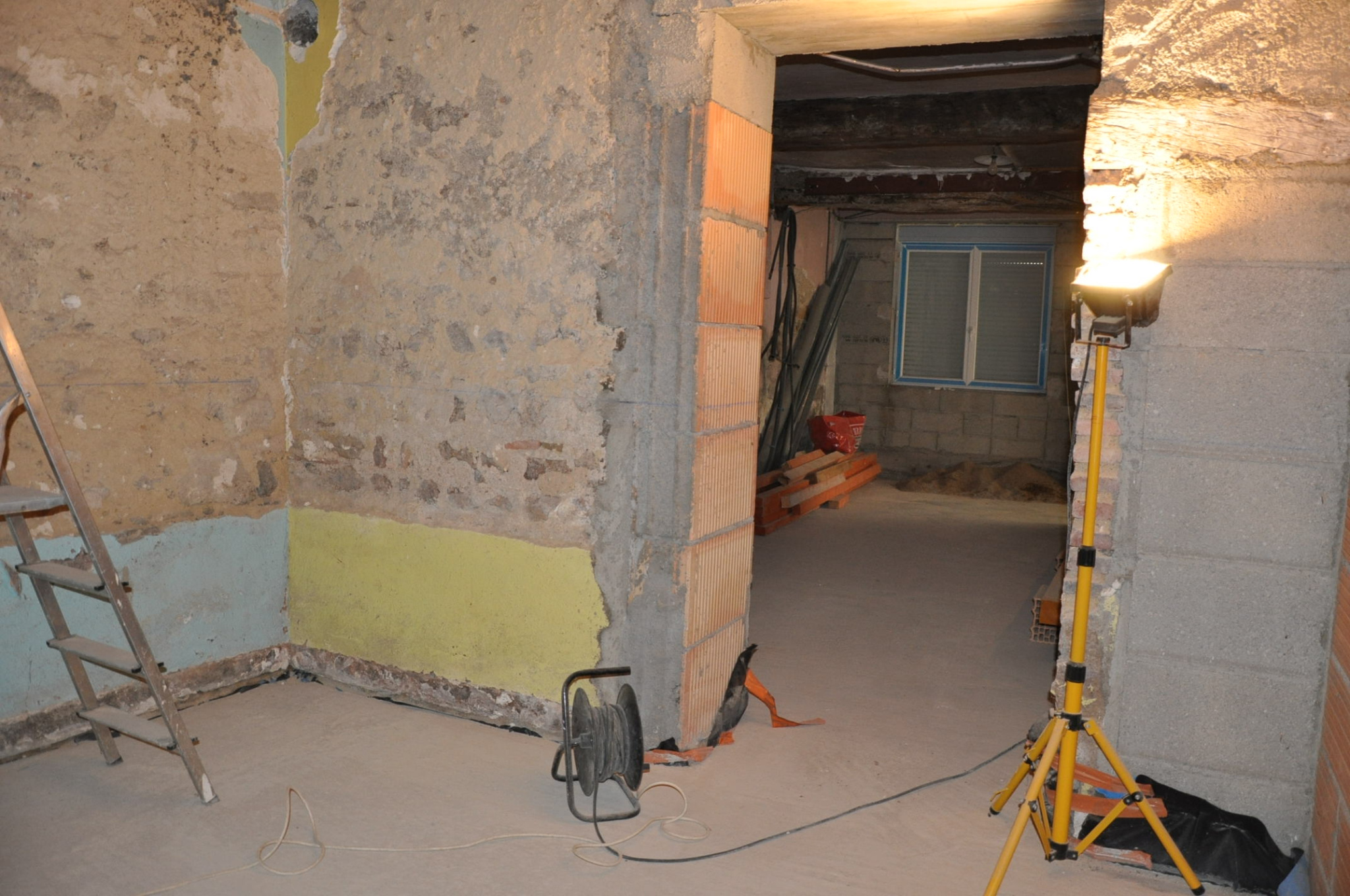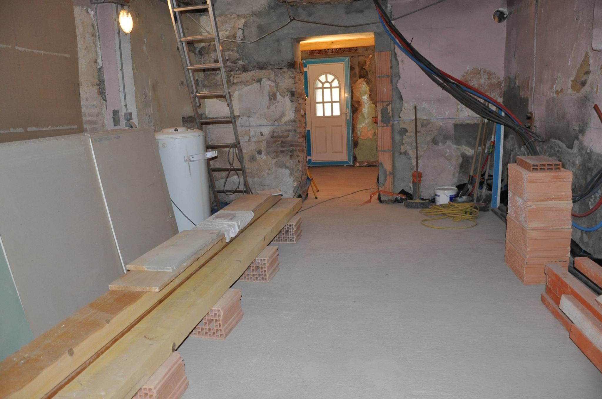 Petite courette à l'arrière. Les travaux ont été partiellement commencés mais non terminés (isolation, électricité, plomberie...). Pas de systéme de chauffage.