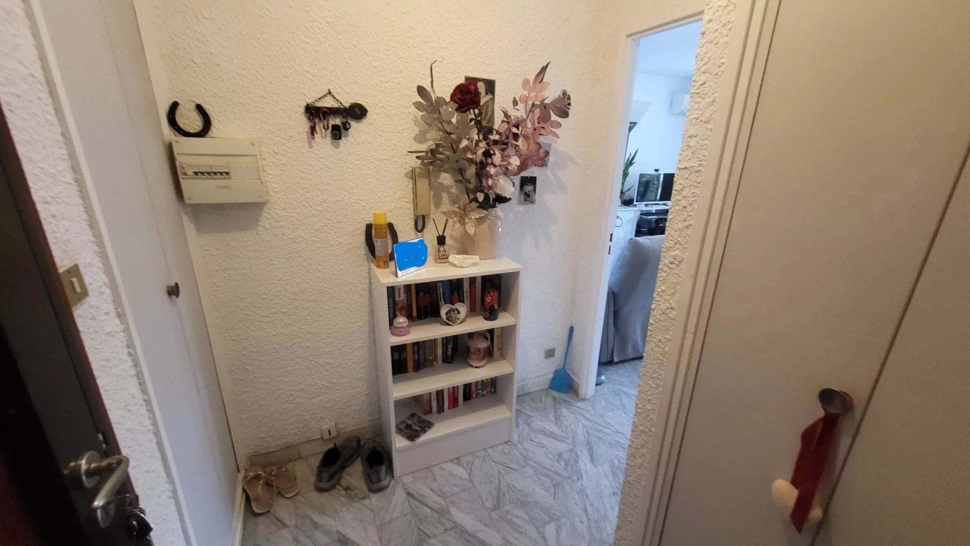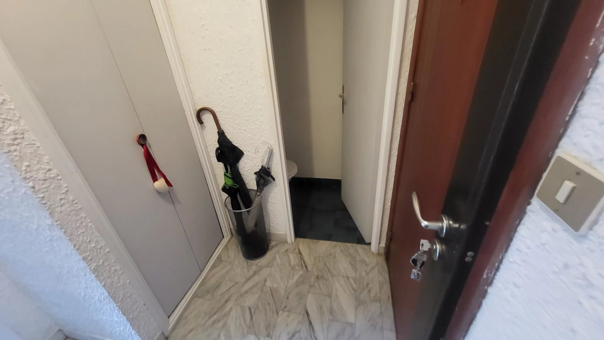 Grand T1 lumineux avec espace nuit séparable en chambre avec fenêtre, terrasse, expo ouest, cuisine avec extension sur petite véranda, volume principal spacieux, hall, salle de douche et WC séparés, hall.