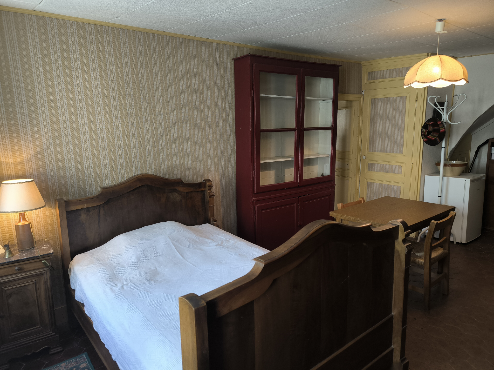 Une autre dépendance se distingue par son grand salon, modulable selon vos besoins, ainsi qu'un atelier, un garage et une cave voutée, offrant de nombreuses possibilités d'aménagement.