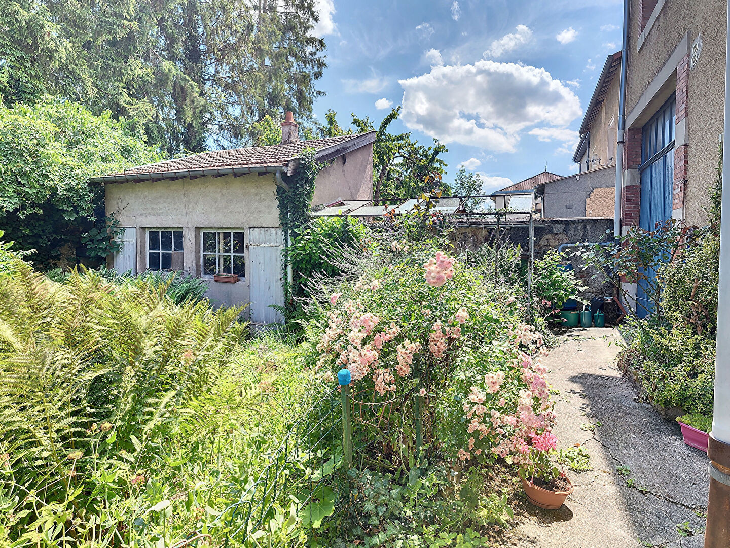 Jardin privatif avec deux remises, cave et un grenier.