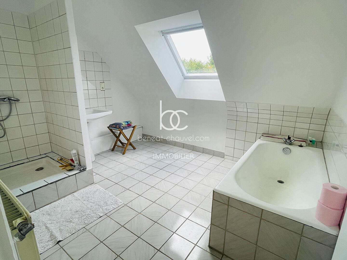 L'étage poursuit cette logique d'espace avec trois chambres confortables, une pièce annexe pour le rangement, et une salle de bain avec douche. L'atout majeur de l'étage réside dans une grande pièce supplémentaire disposant d'un point d'eau, parfaite pour laisser libre cours à vos idées : création d'une suite parentale spacieuse, d'une salle de jeux ou d'un atelier. Le sous-sol complet vient parfaire cette offre, apportant un espace de stockage ou d'aménagement supplémentaire considérable. Idéale pour une résidence principale ou secondaire.