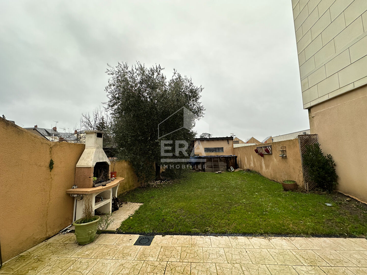 Cave, terrasse et jardin avec cabanon.