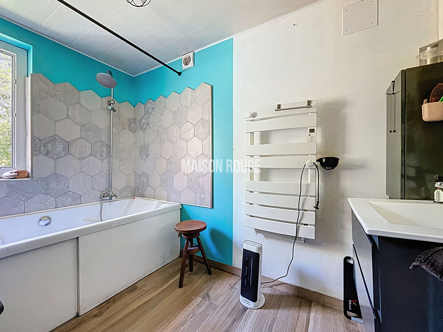 Elle se compose de plain-pied d'une entrée desservant une pièce à vivre avec poêle à bois, une cuisine, une suite parentale avec salle d'eau, un sas distribuant une salle de bain et un WC.