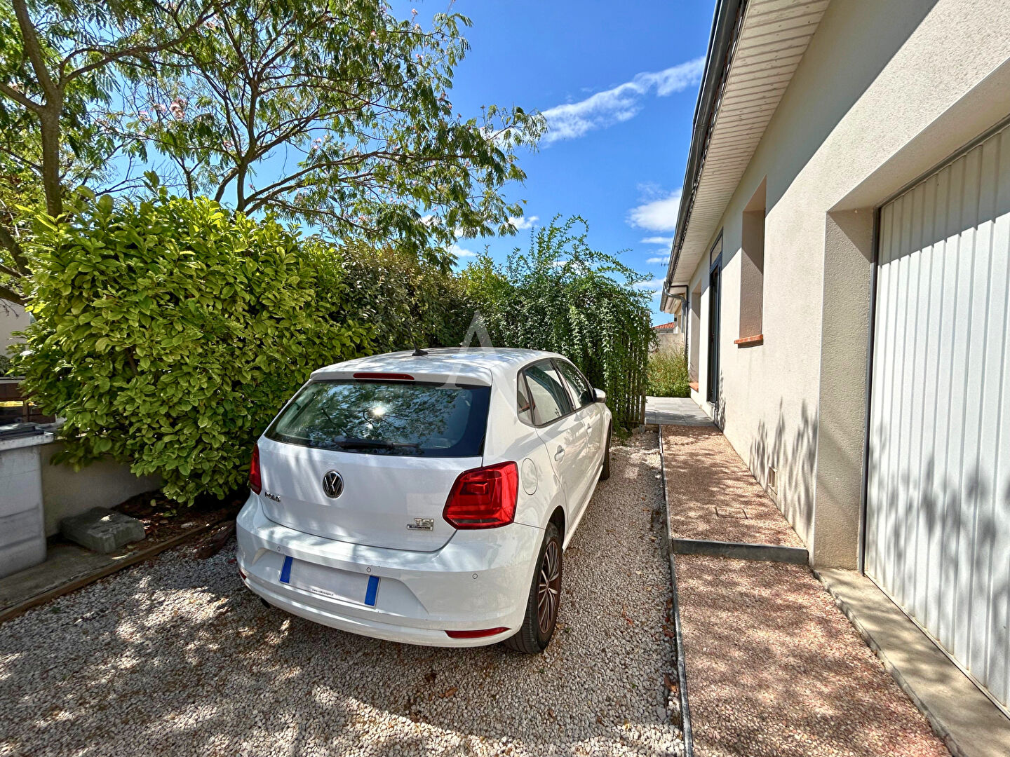 À l'extérieur, un portail permet l'accès à une place de stationnement privative de 31 m², suivie d'une spacieuse terrasse carrelée exposée SUD de 28 m², parfaite pour recevoir.