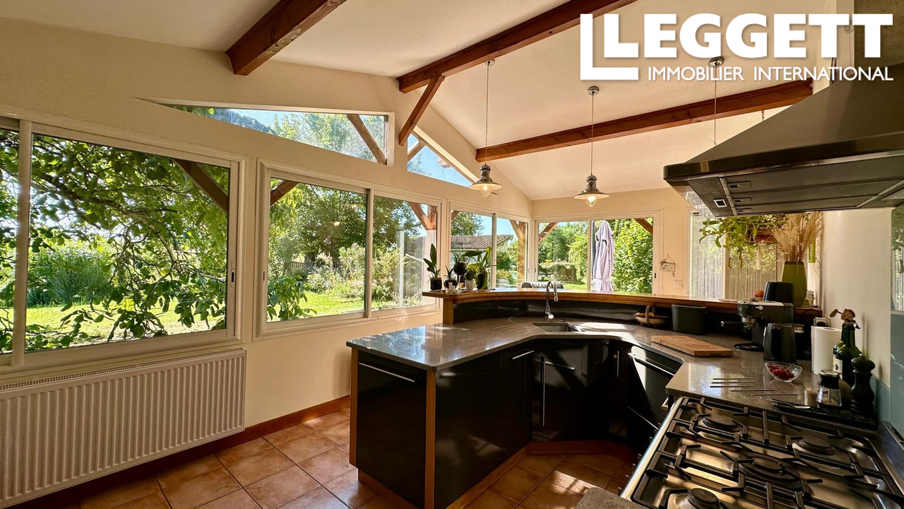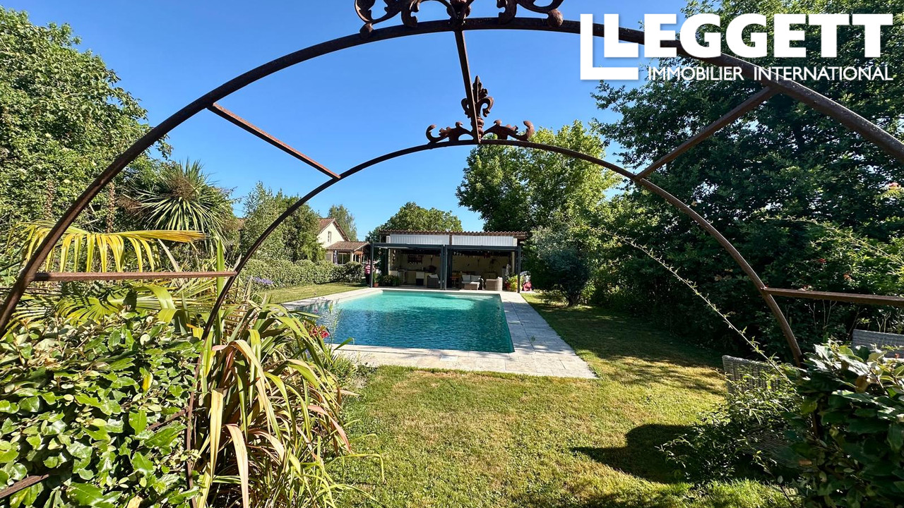A38490JSN65 - Cette maison de campagne magnifiquement restaurée, comprenant 2/3 chambres, est située à l'orée du charmant village de Labatut-Rivière avec un cottage indépendant idéal pour générer des revenus locatifs ou accueillir la famille. La maison principale, décorée avec goût et lumineuse, comprend deux salons lumineux (formel et décontracté), une cuisine équipée sur mesure avec incrustations de bambou et plans de travail en granit, une salle à manger et une buanderie. Le grand palier mène à deux chambres avec salle de bains attenante (douche + WC chacune). À l'extérieur, vous profiterez d'un grand jardin arboré avec des parterres de fleurs, des arbres, un étang, un potager et un enclos pour poules. Une terrasse couverte avec cuisine d'été donne sur la grande piscine. De l'autre côté de l'allée gravillonnée, le cottage comprend un salon, une cuisine, des couchages pour 8 personnes ou plus, ainsi qu'un bureau pouvant être transformé en chambre supplémentaire. Un garage complète l'ensemble.