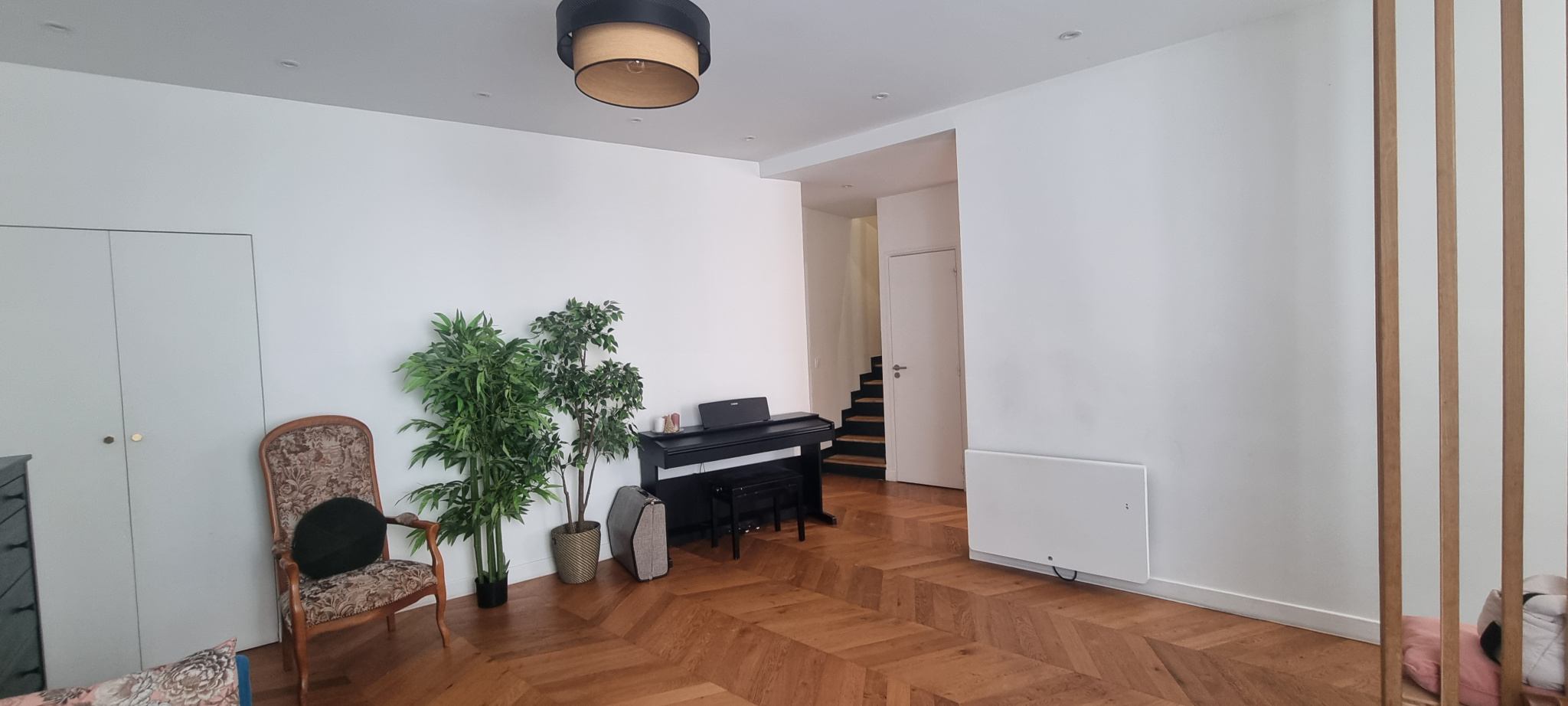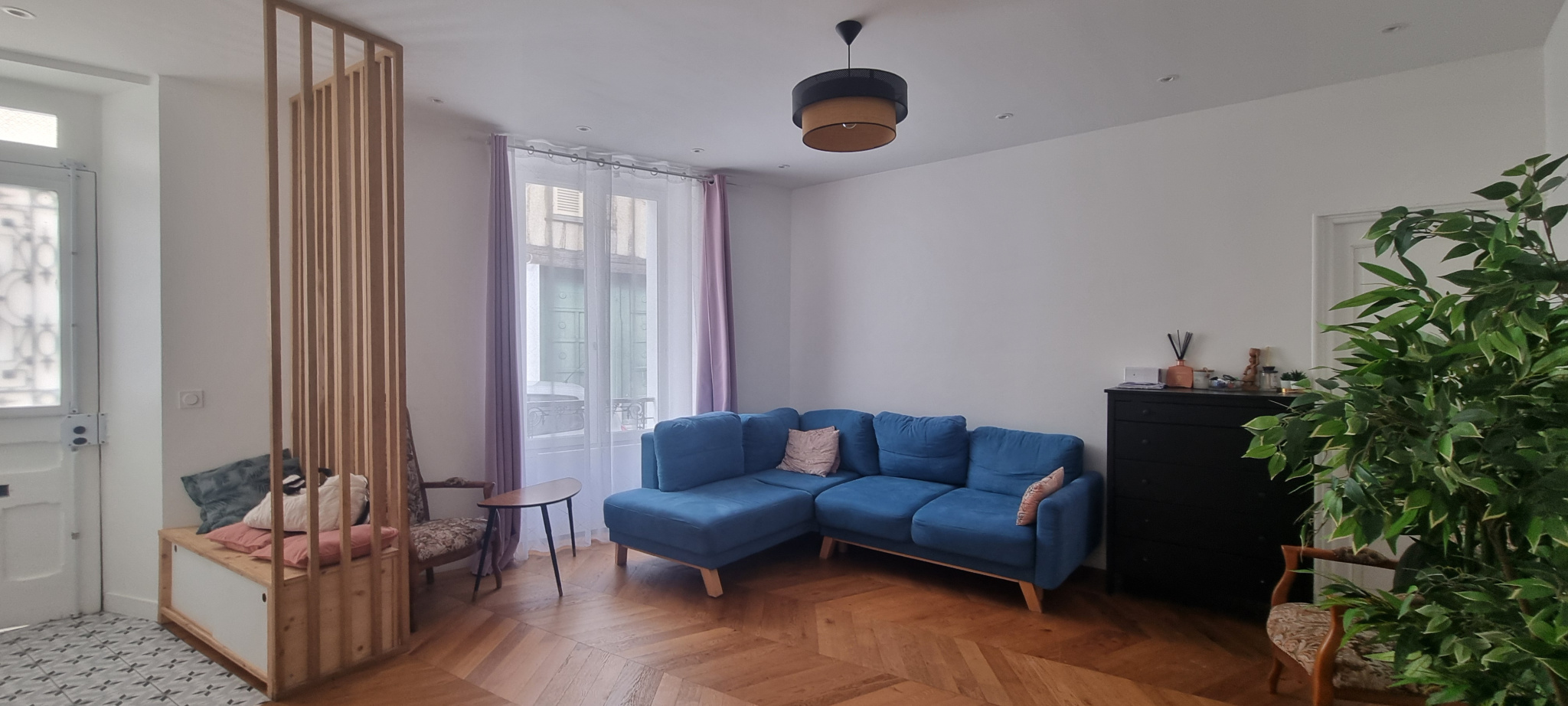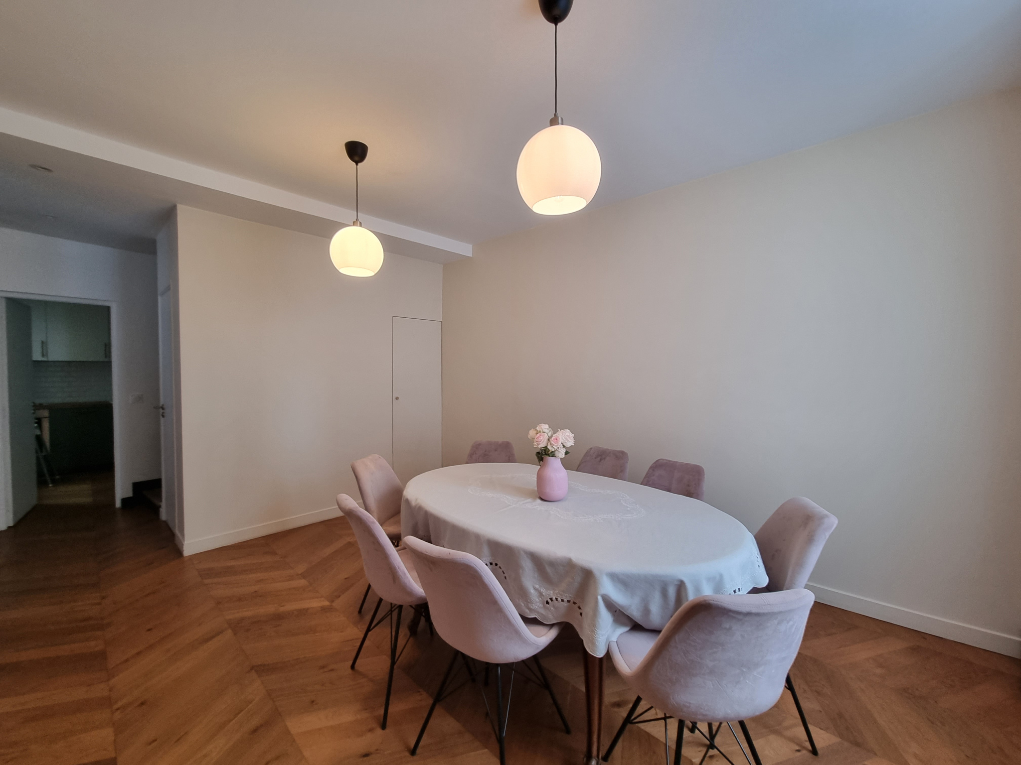Il se compose d'une maison de ville entièrement rénovée de 120 m2, comprenant au rez-de-chaussée : une entrée desservant un séjour, une salle à manger chaleureuse, une cuisine aménagée, et des toilettes indépendants.
