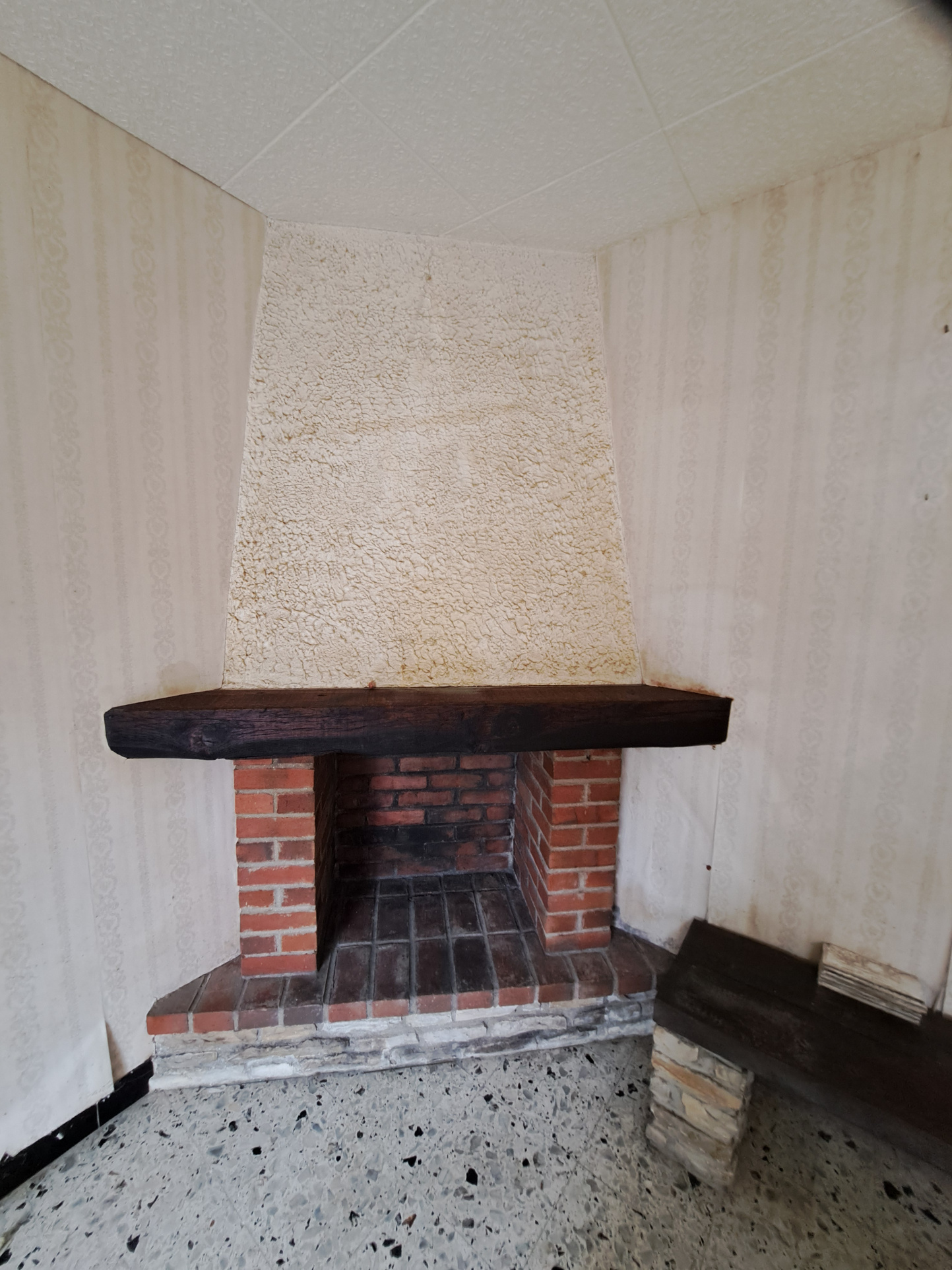 au RDC : entrée sur cuisine aménagée équipée de 18 m2, salon - salle à manger de 26 m2 avec cheminée ouverte, salle de bains avec wc ;