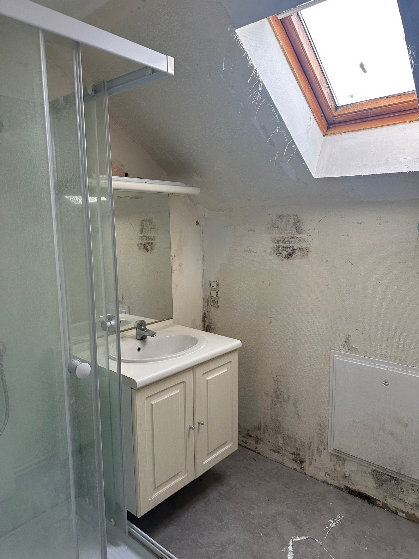 A l'étage : palier, WC, deux chambres, salle d'eau.
