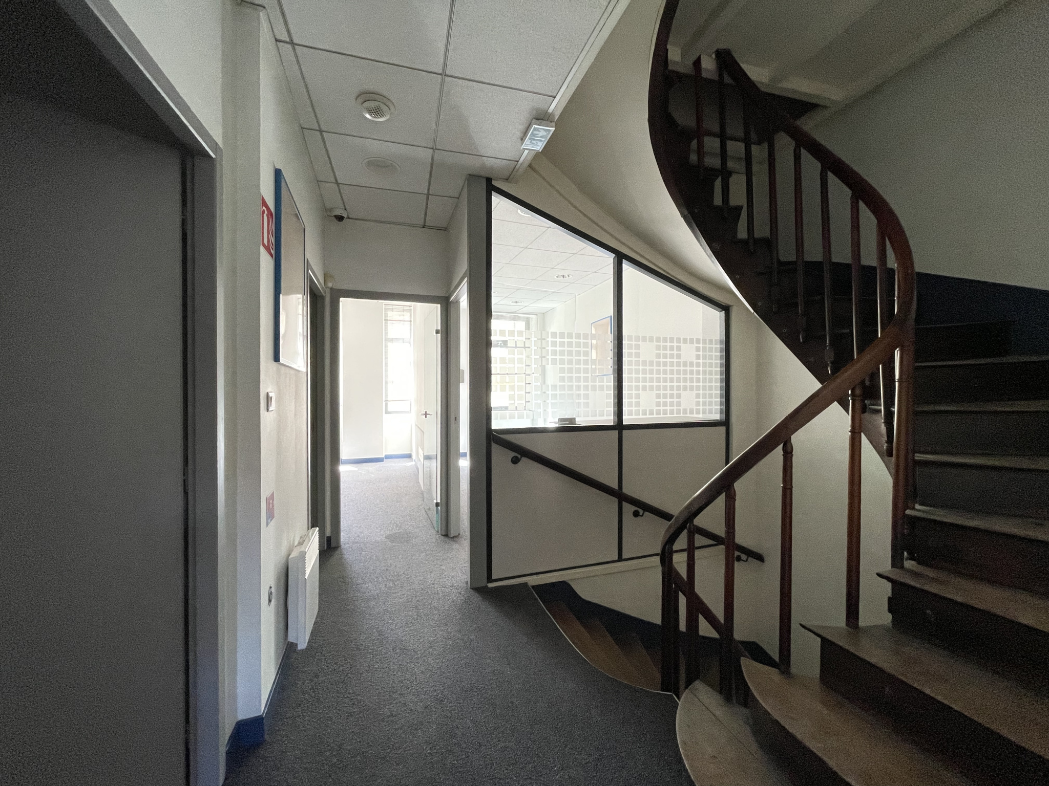 REF 34742 : 93500EUR HAI, Confolens (16), EXCLUSIVITÉ ! au coeur de la ville, immeuble ancien et mitoyen avec local commercial et bureaux sur 2 niveaux bon état + 2 niveaux supérieur à rénover, 207.5 env. utilisables, comprenant au rez de chaussée : un local commercial composé : hall d'entrée, local commercial, local distributeur et local technique, au 1er étage : palier, 3 bureaux, kitchenette, remise, sanitaires homme et femme, au 2nd étage partie habitation : palier, 4 pièces, au 3eme étage : palier, 2 pièces, au 4éme étage : un grenier mansardé de 16 m2. Chauf. électrique + PAC air/air réversible, assainissement collectif.