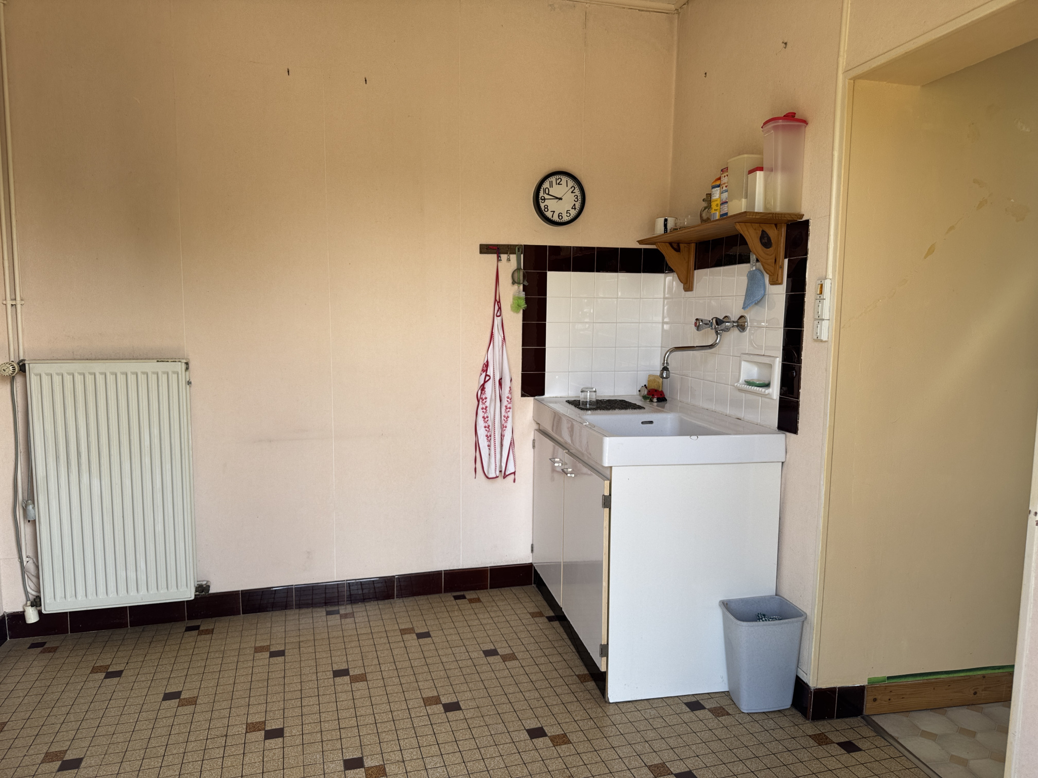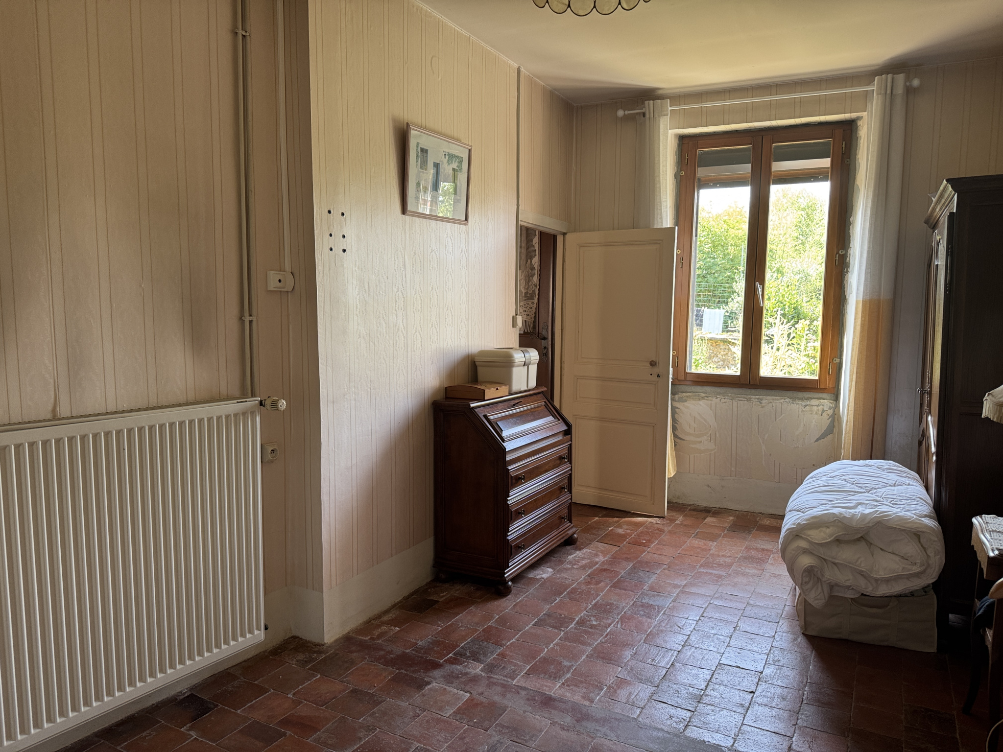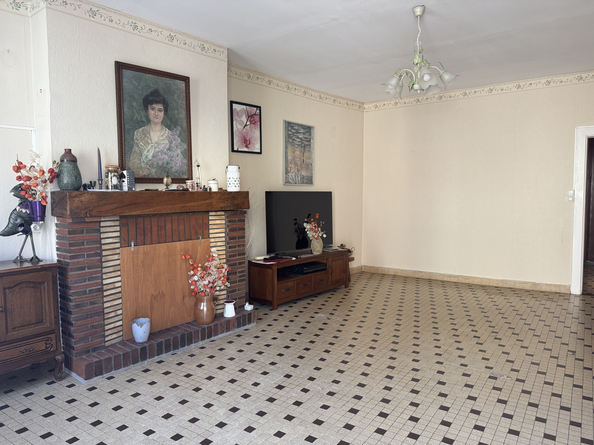 Maison de plain pied comprenant : entrée, séjour avec cheminée, cuisine, deux chambres, arriere cuisine, salle d'eau, wc. Garage. Atelier. Grand grenier aménageable. Double vitrage. Tout à l'égoût. Chauffage central. Jardin clos d'environ 150 m2. Commerces à deux pas.